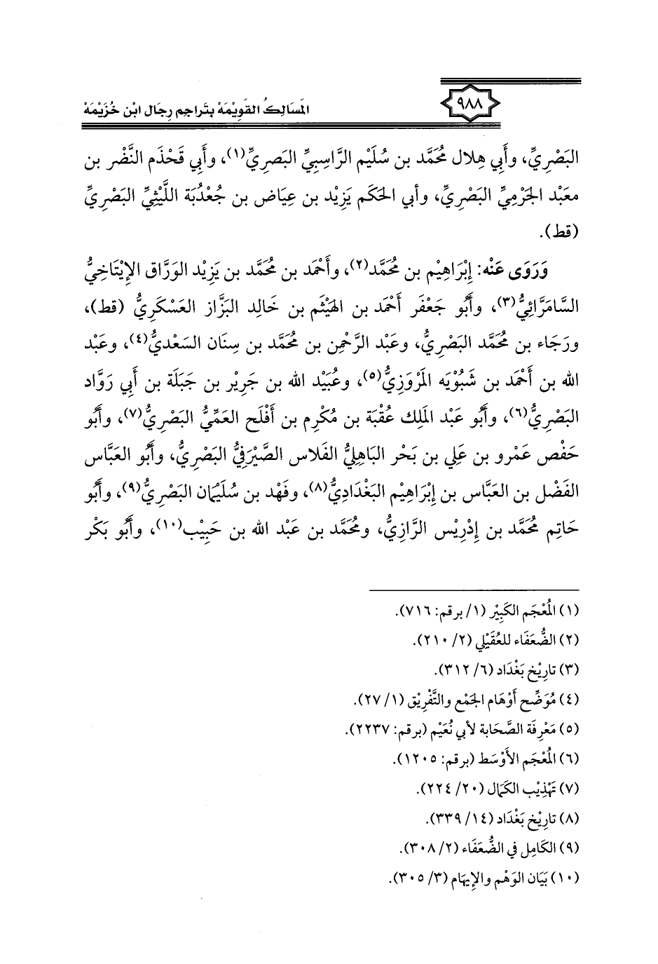 كتاب المسالك القويمة بتراجم رجال ابن خزيمة في الصحيح، والتوحيد، والفوائد (اسم الجزء: 2)