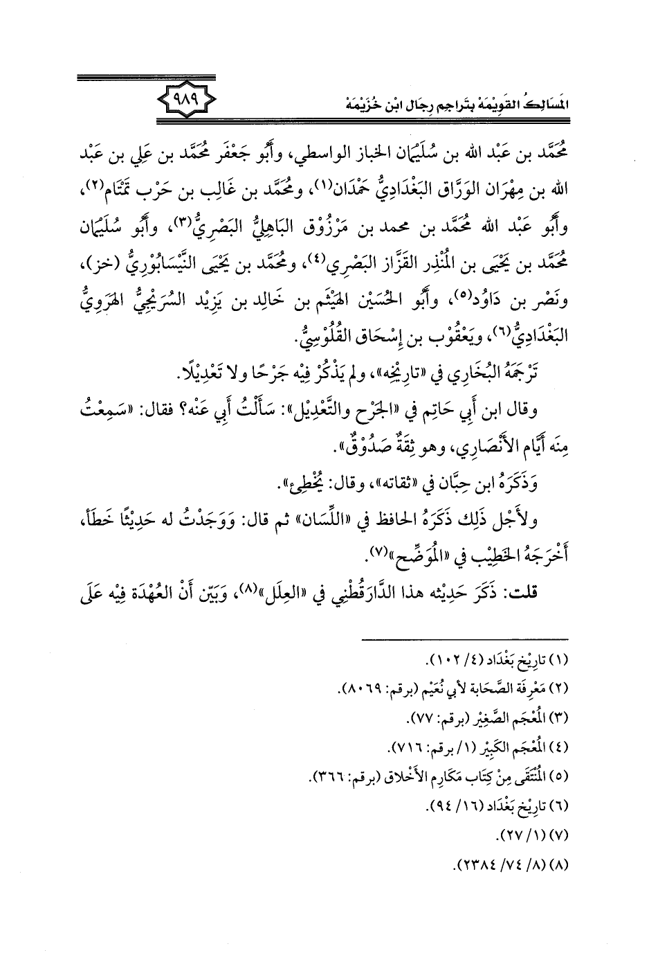 كتاب المسالك القويمة بتراجم رجال ابن خزيمة في الصحيح، والتوحيد، والفوائد (اسم الجزء: 2)