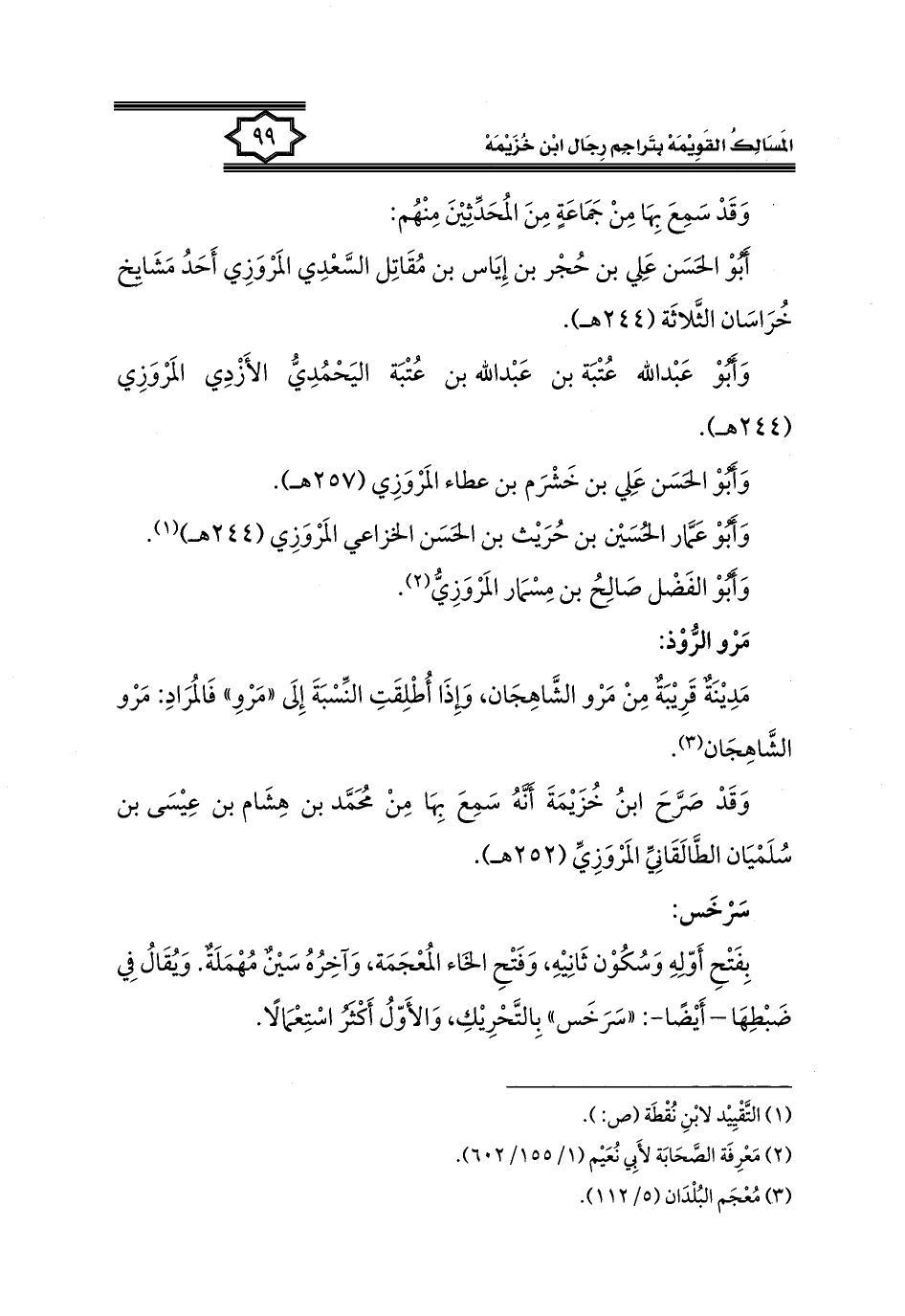 كتاب المسالك القويمة بتراجم رجال ابن خزيمة في الصحيح، والتوحيد، والفوائد (اسم الجزء: 1)