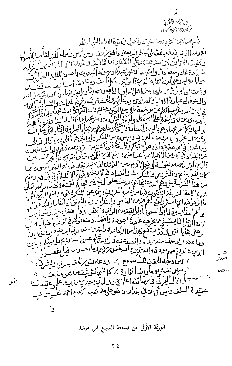 الورقة الأولى من نسخة الشيخ ابن مرشد24