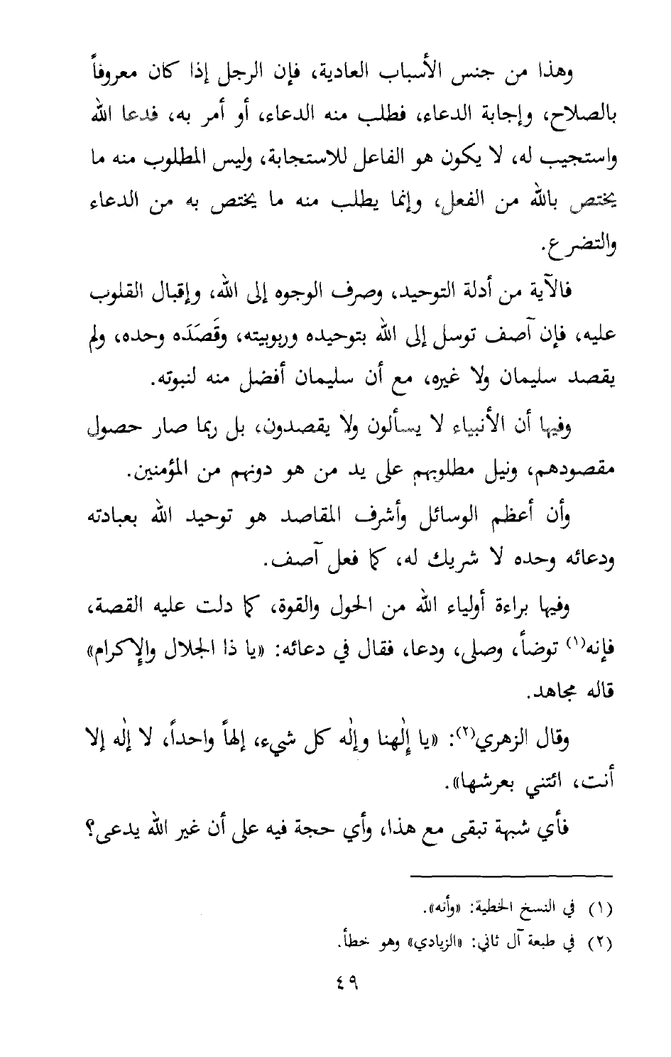 فالآية من أدلة التوحيد، وصرف الوجوه إلى الله، وإقبال القلوب عليه، فإن آصف توسل إلى الله بتوحيده وربوبيته، وقَصَدَه وحده، ولم يقصد سليمان ولا غيره، مع أن سليمان أفضل منه لنبوته.