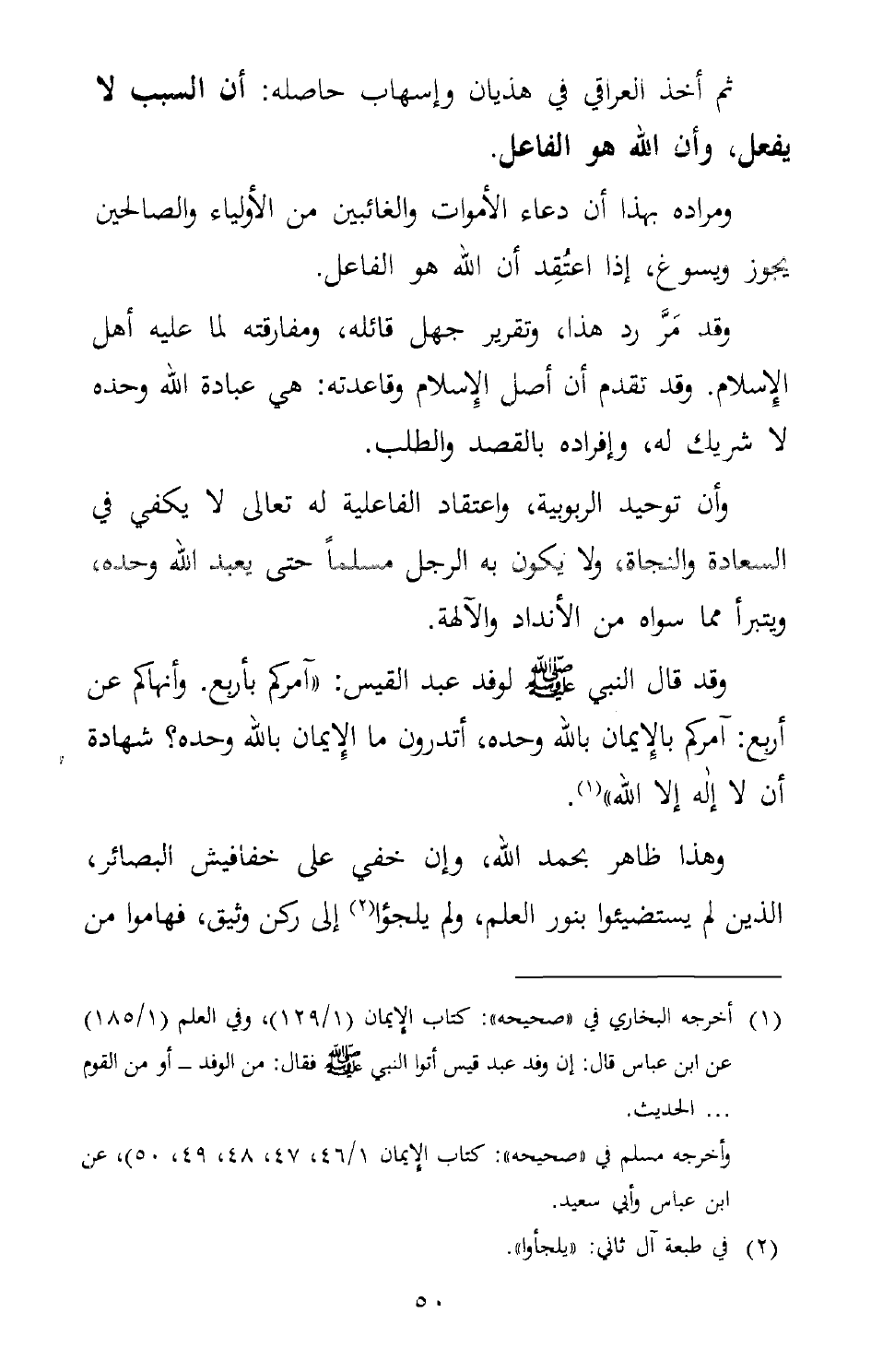 ثم أخذ العراقي في هذيان وإسهاب حاصله: أن السبب لا يفعل، وأن الله هو الفاعل.