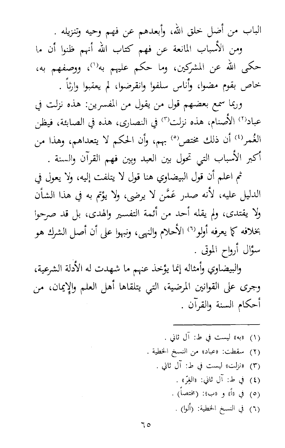 والبيضاوي وأمثاله إنما يؤخذ عنهم ما شهدت له الأدلة الشرعية، وجرى على القوانين المرضية، التي يتلقاها أهل العلم والإيمان، من أحكام السنة والقرآن.