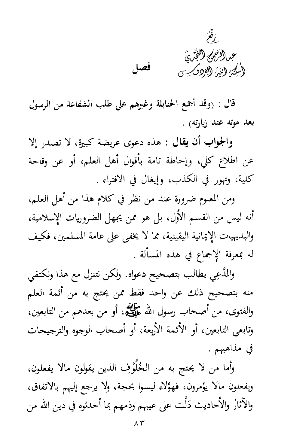 قال: (وقد أجمع الحنابلة وغيرهم على طلب الشفاعة من الرسول بعد موته عند زيارته) .