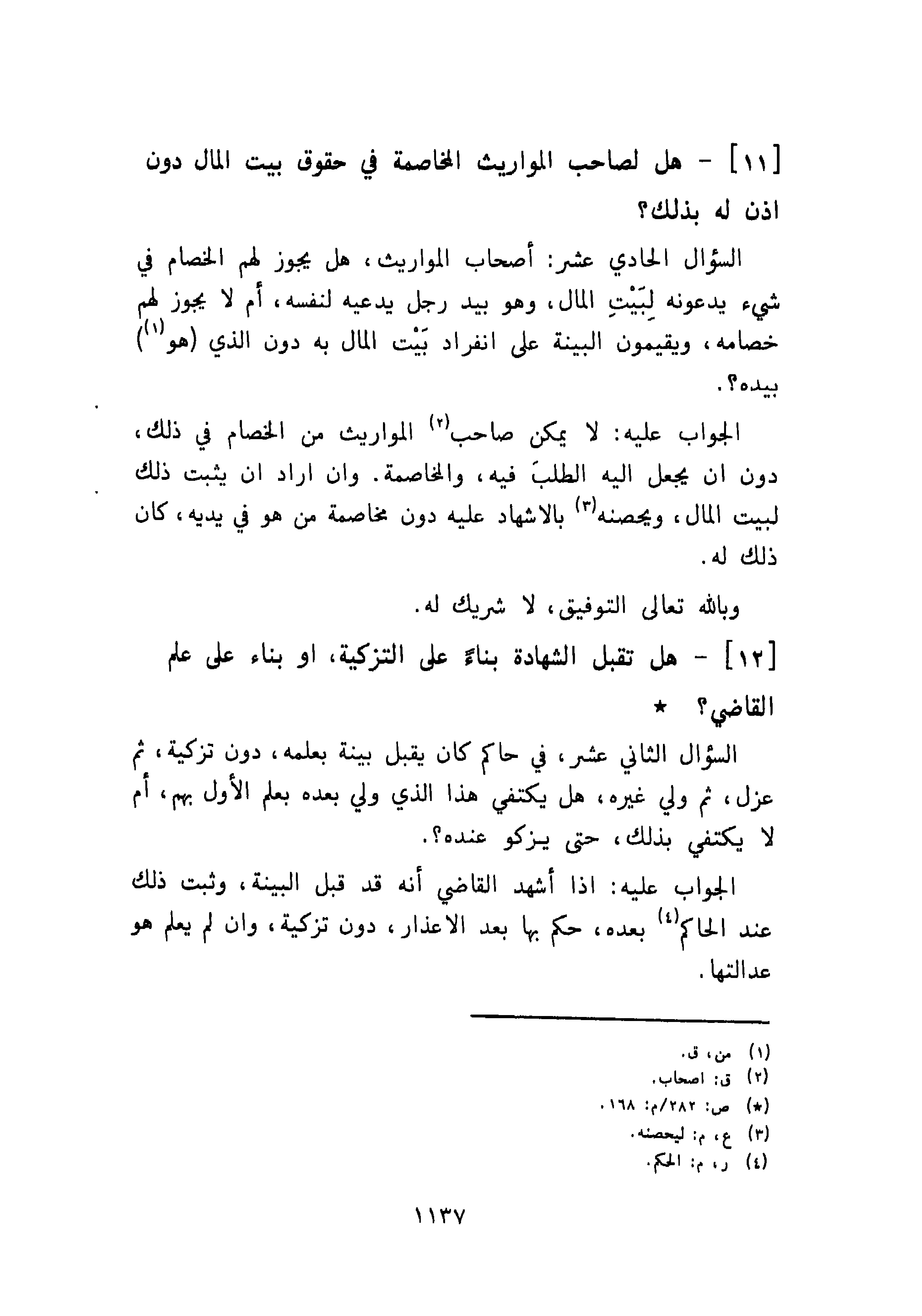 [12]- هل تقبل الشهادة بناءً على التزكية، أو بناء على علم القاضي؟