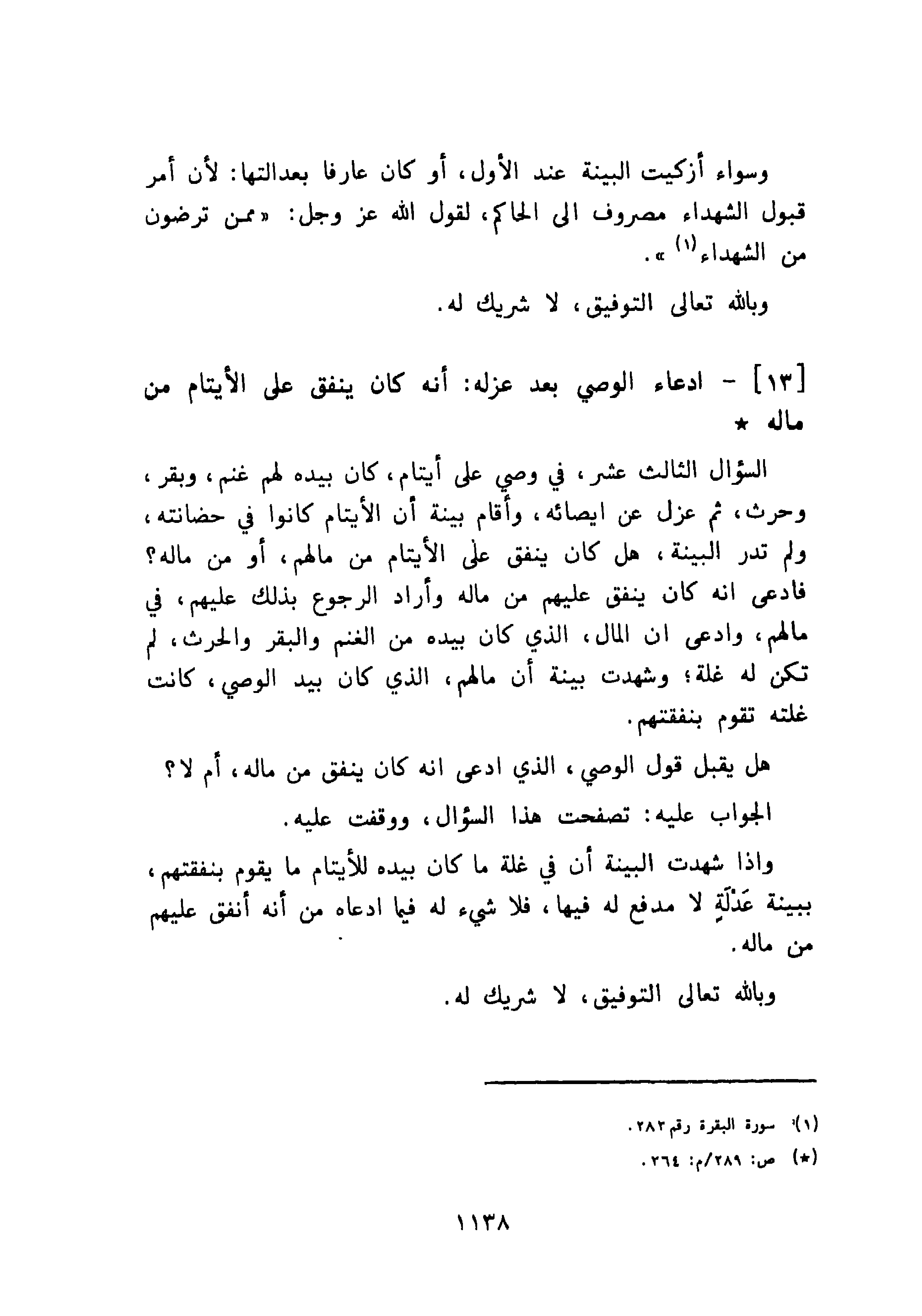 [13]- ادعاء الوصي بعد عزله: أنه كان ينفق على الأيتام من ماله