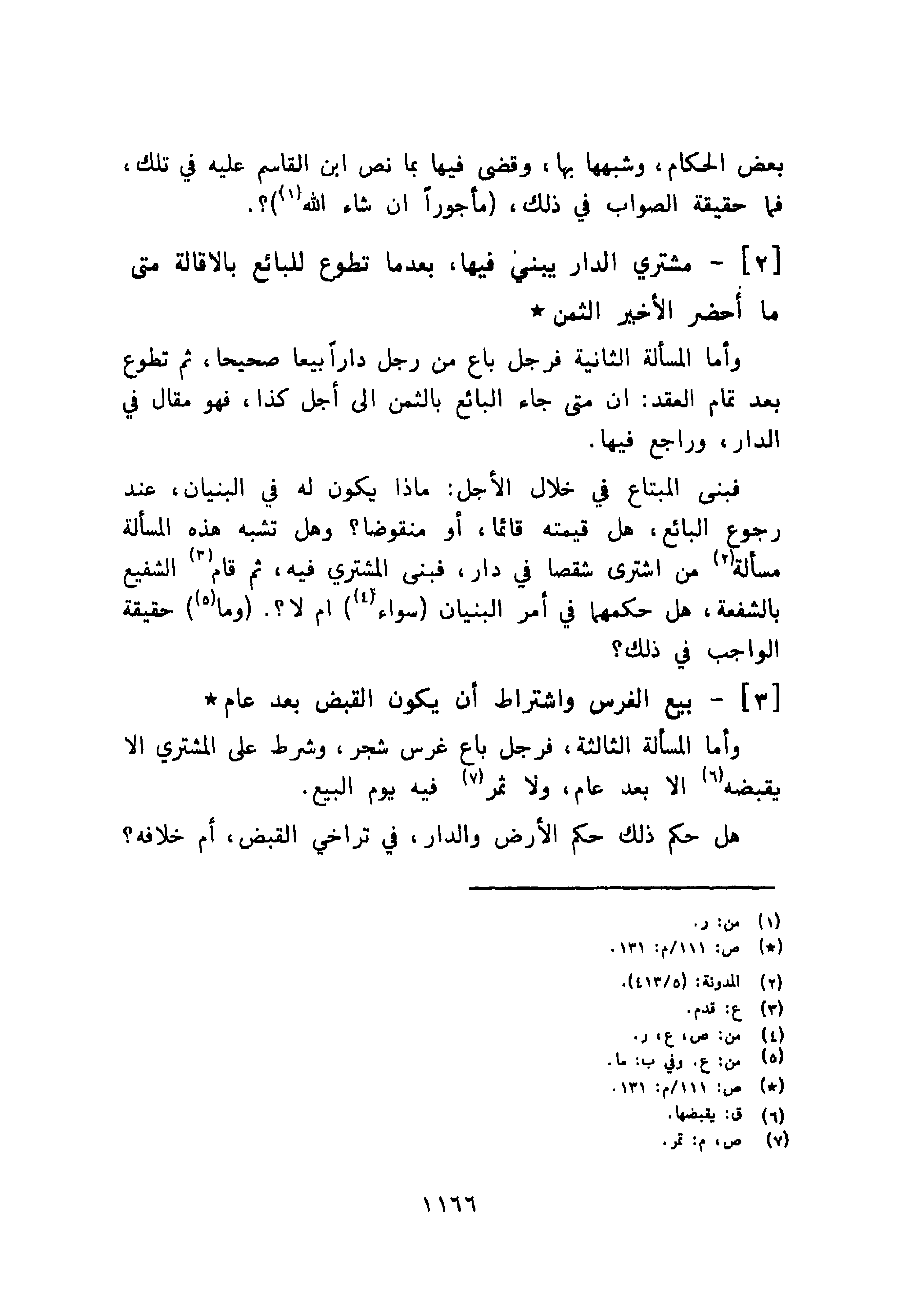 [2]- مشتري الدار يبني فيها، بعدما تطوع للبائع بالإقالة متى ما أحضر الأخير الثمن