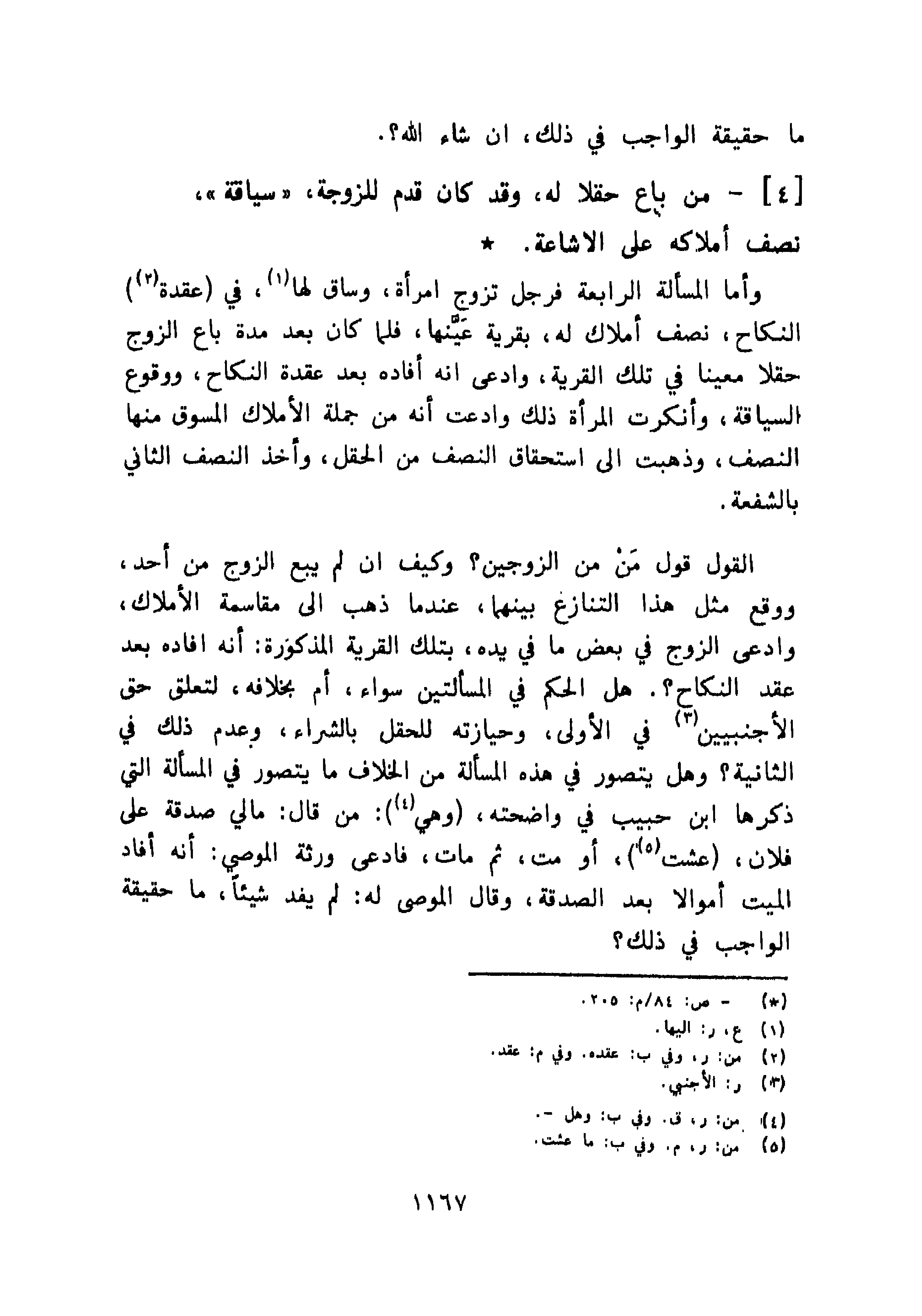 [4]- من باع حقلا له، وقد كان قدم للزوجة، " سياقة "، نصف أملاكه على الإشاعة.
