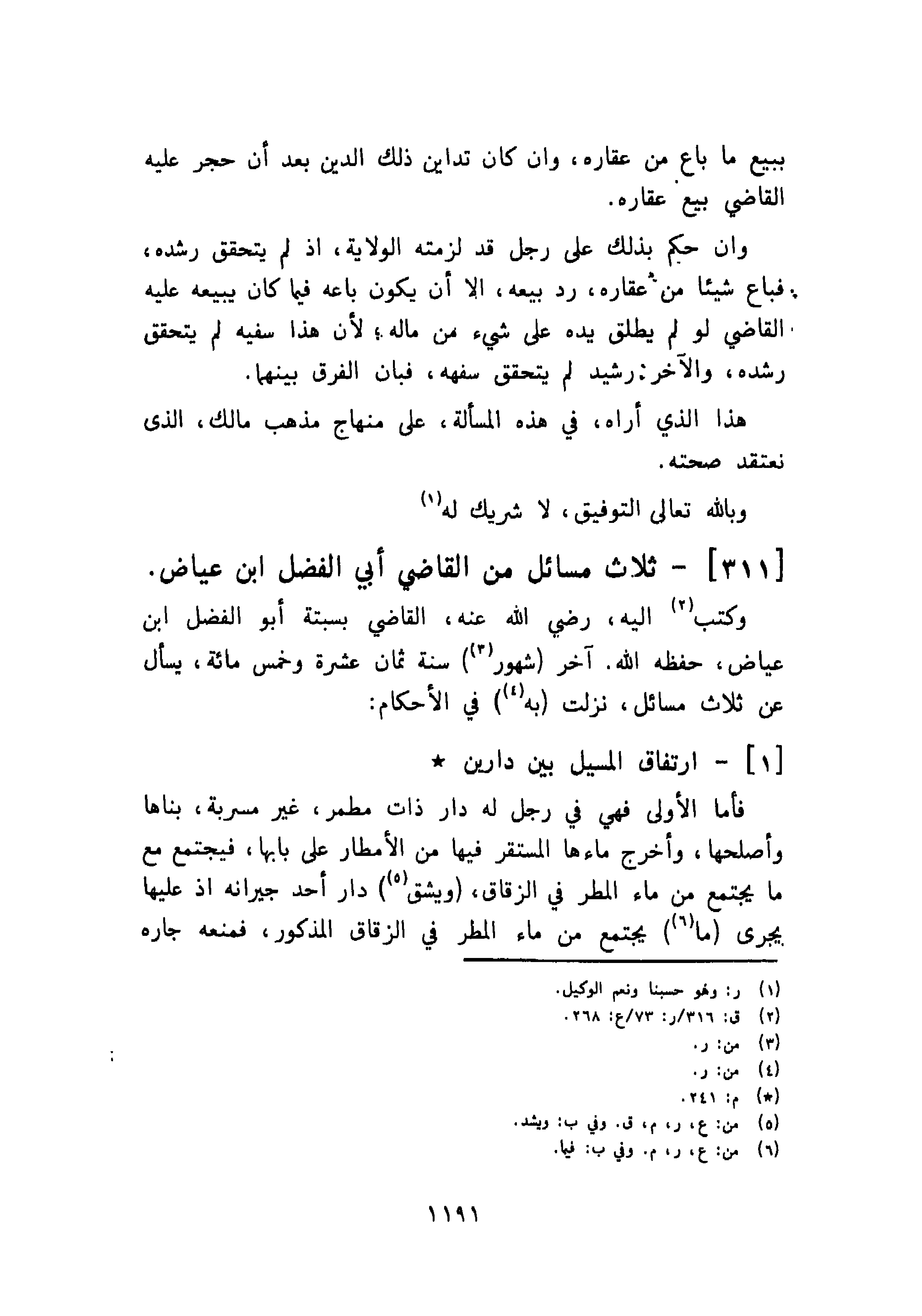 [311]- ثلاث مسائل من القاضي أبي الفضل ابن عياض.