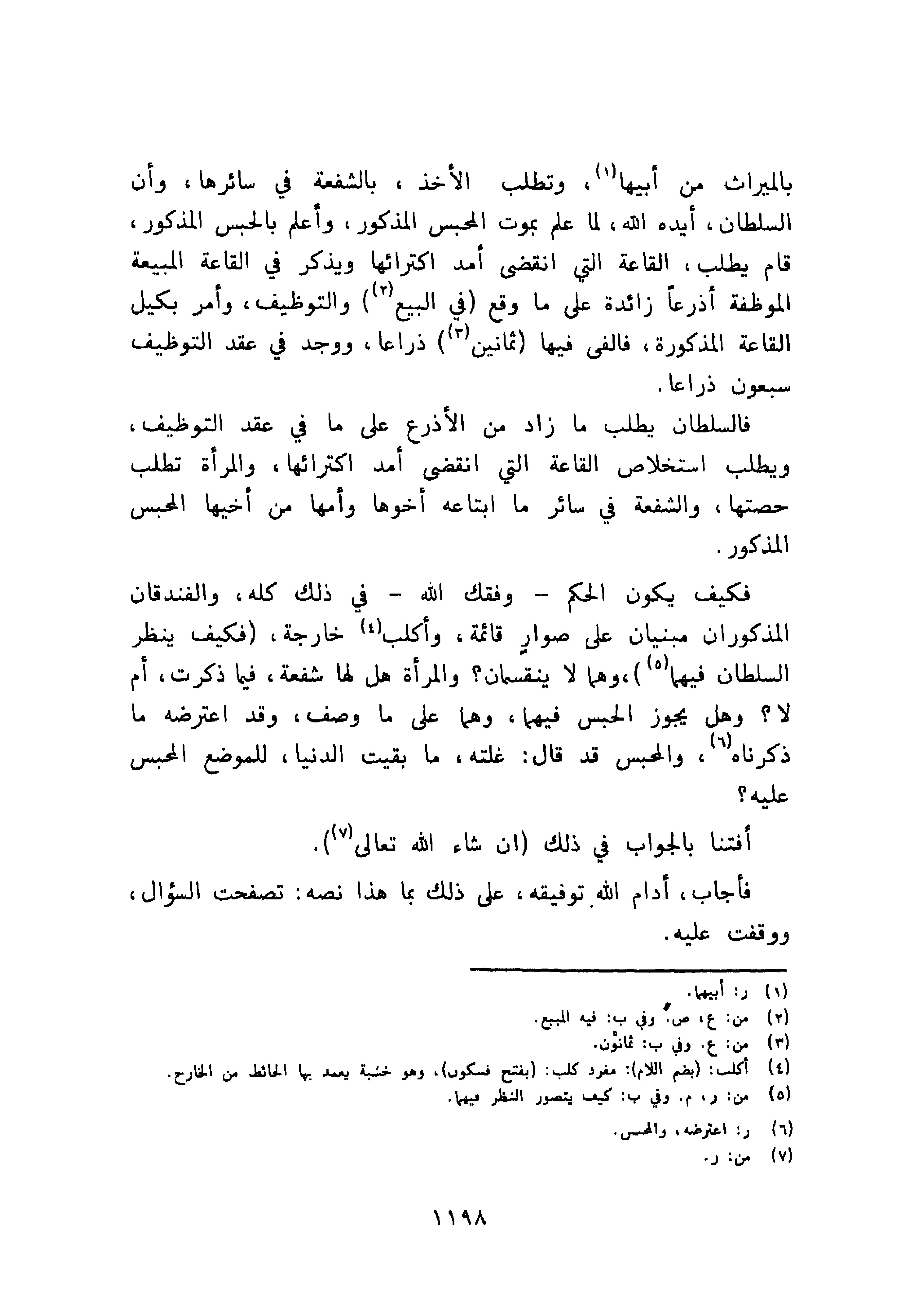 فأجاب، أدام الله توفيقه، على ذلك بما هذا نصه: تصفحت السؤال، ووقفت عليه.