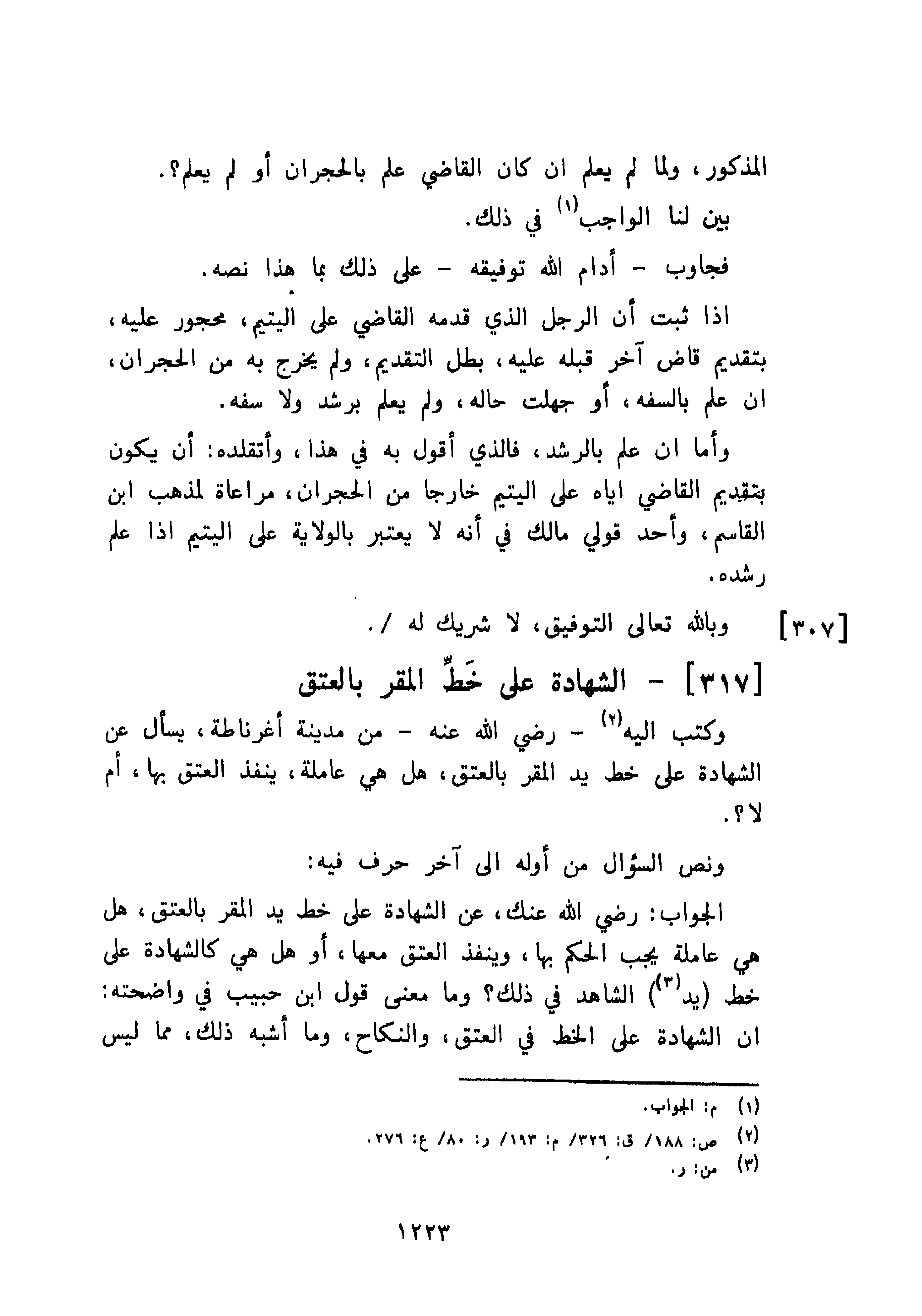 [317]- الشهادة على خَطِّ المقر بالعتق