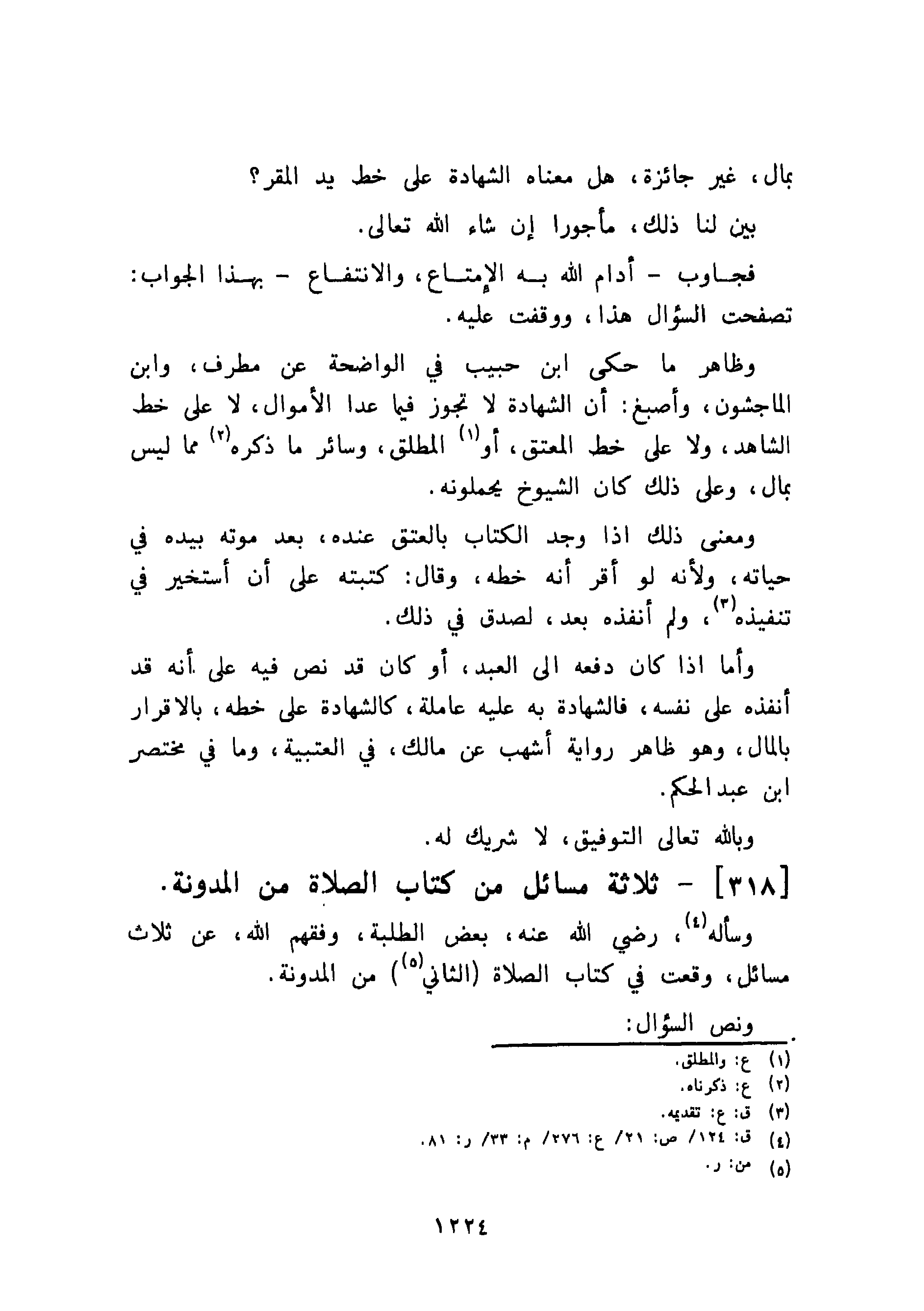 [318]- ثلاثة مسائل من كتاب الصلاة من المدونة