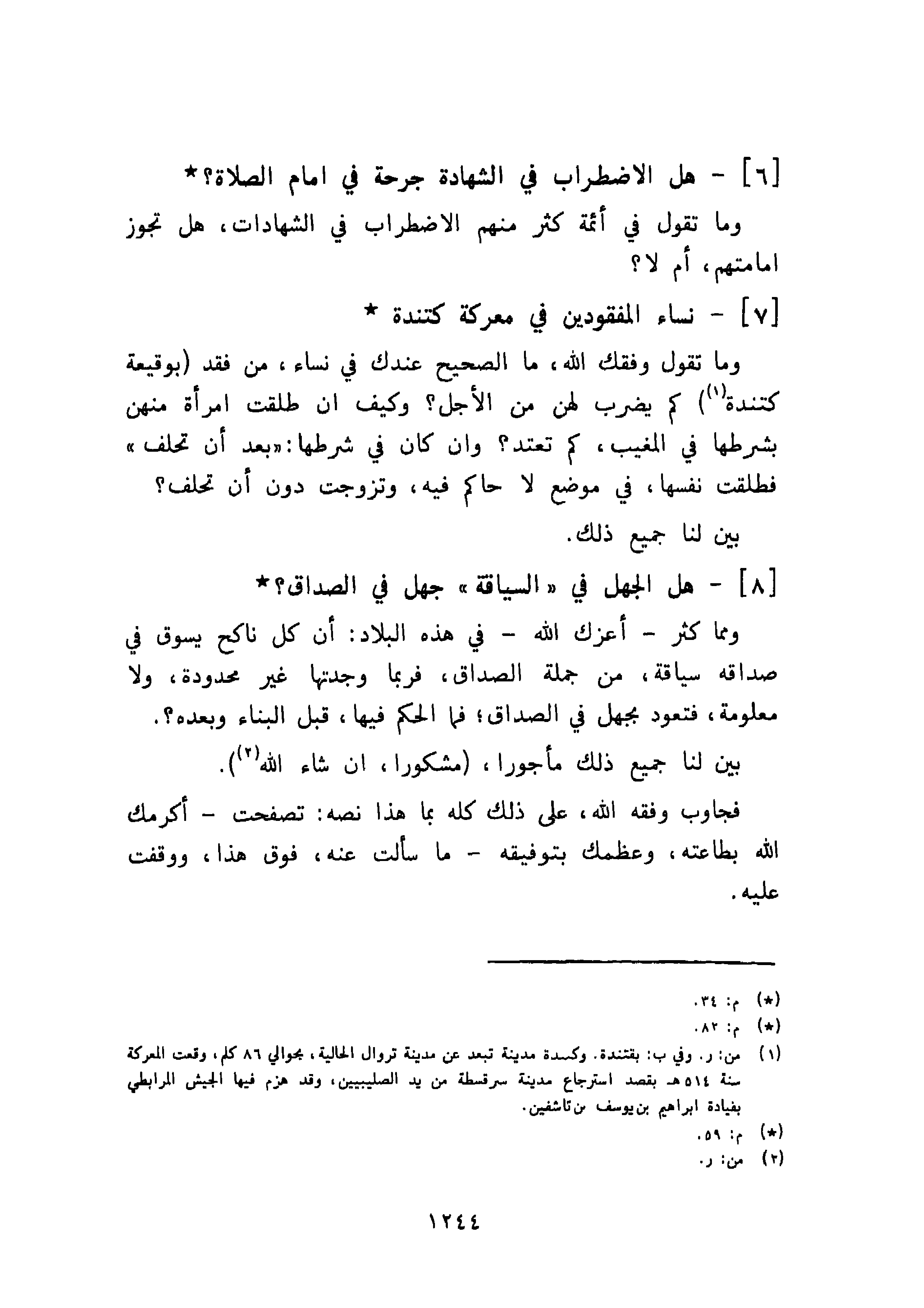 فجاوب وفقه الله، على ذلك كله بما هذا نصه: تصفحت - أكرمك الله بطاعته، وعظمك بتوفيقه - ما سألت عنه، فوق هذا، ووقفت عليه.