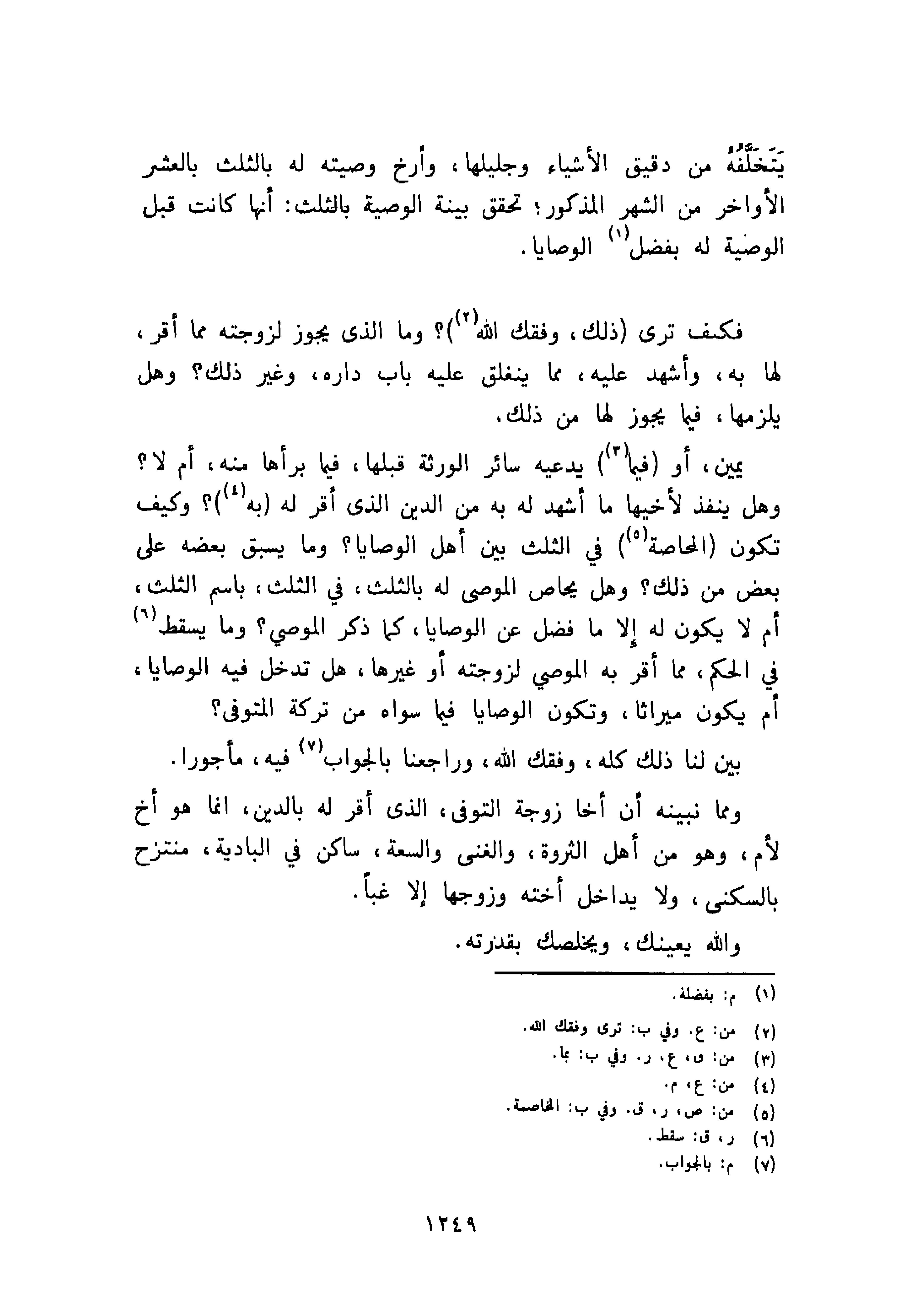 بين لنا ذلك كله، وفقك الله، وراجعنا بالجواب فيه، مأجورا.