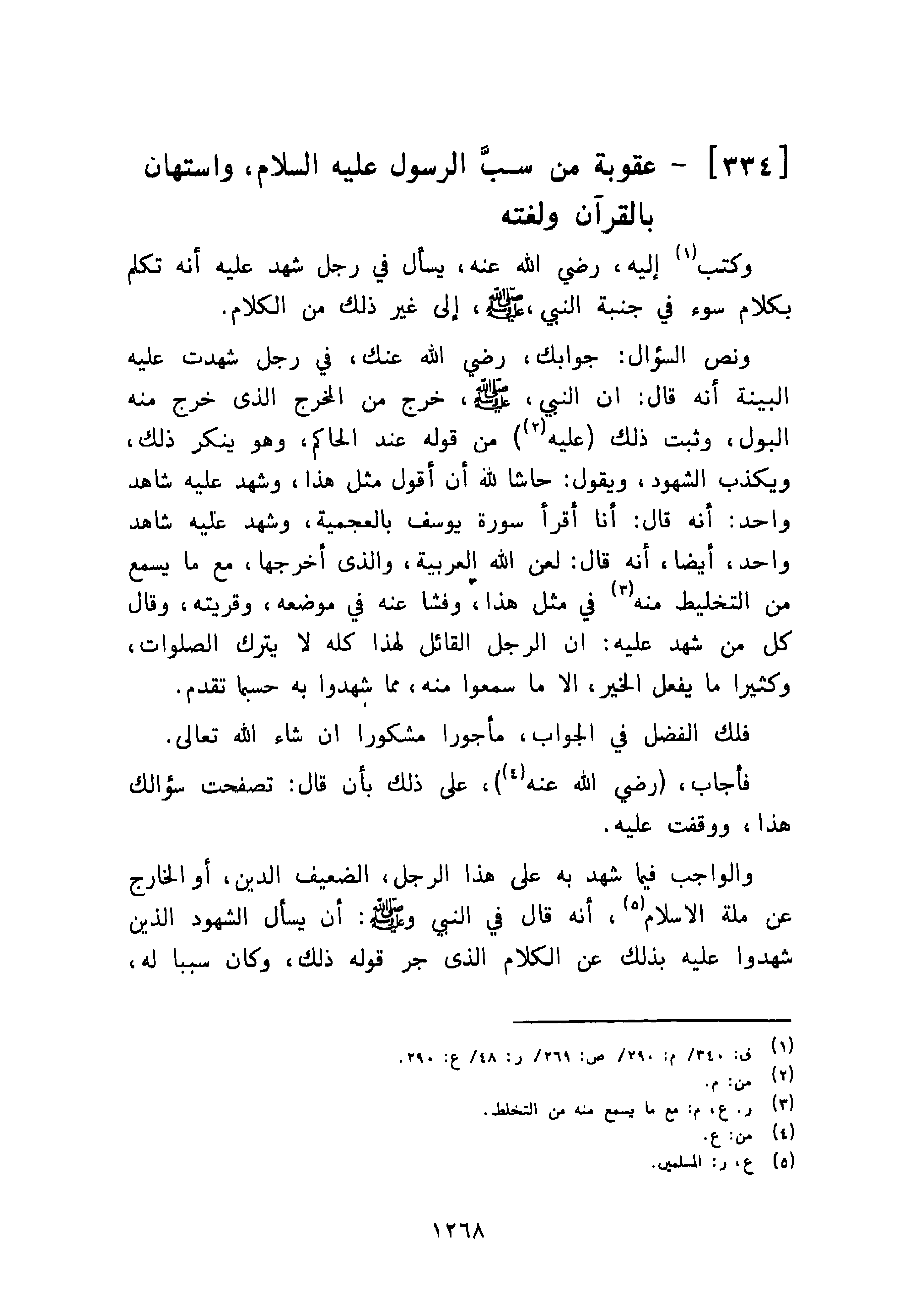 [334]- عقوبة من سبَّ الرسول عليه السلام، واستهان بالقرآن ولغته