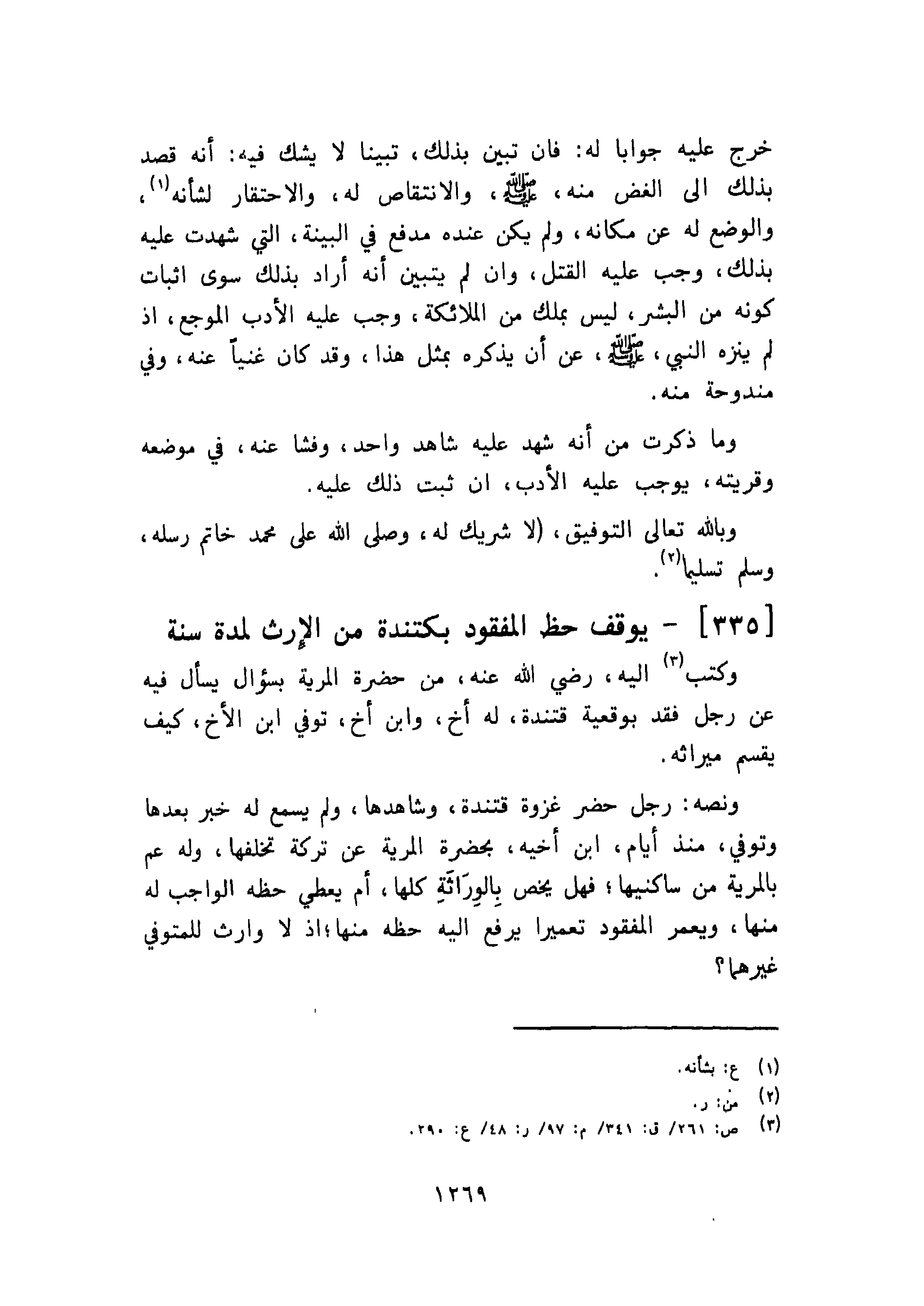 [335]- يوقف حظ المفقود بكتندة من الإرث لمدة سنة