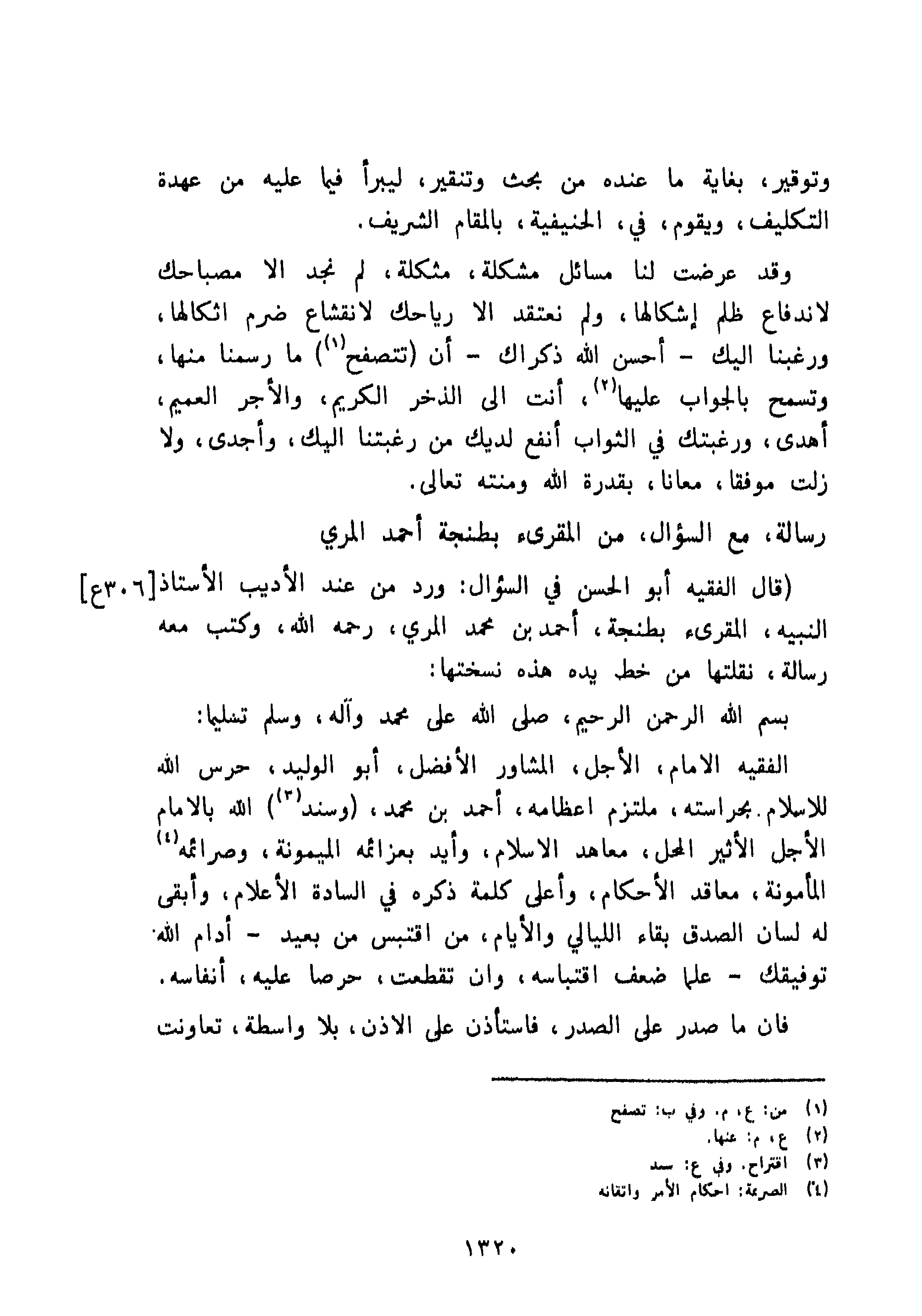 رسالة، مع السؤال، من المقريء بطنجة أحمد المري