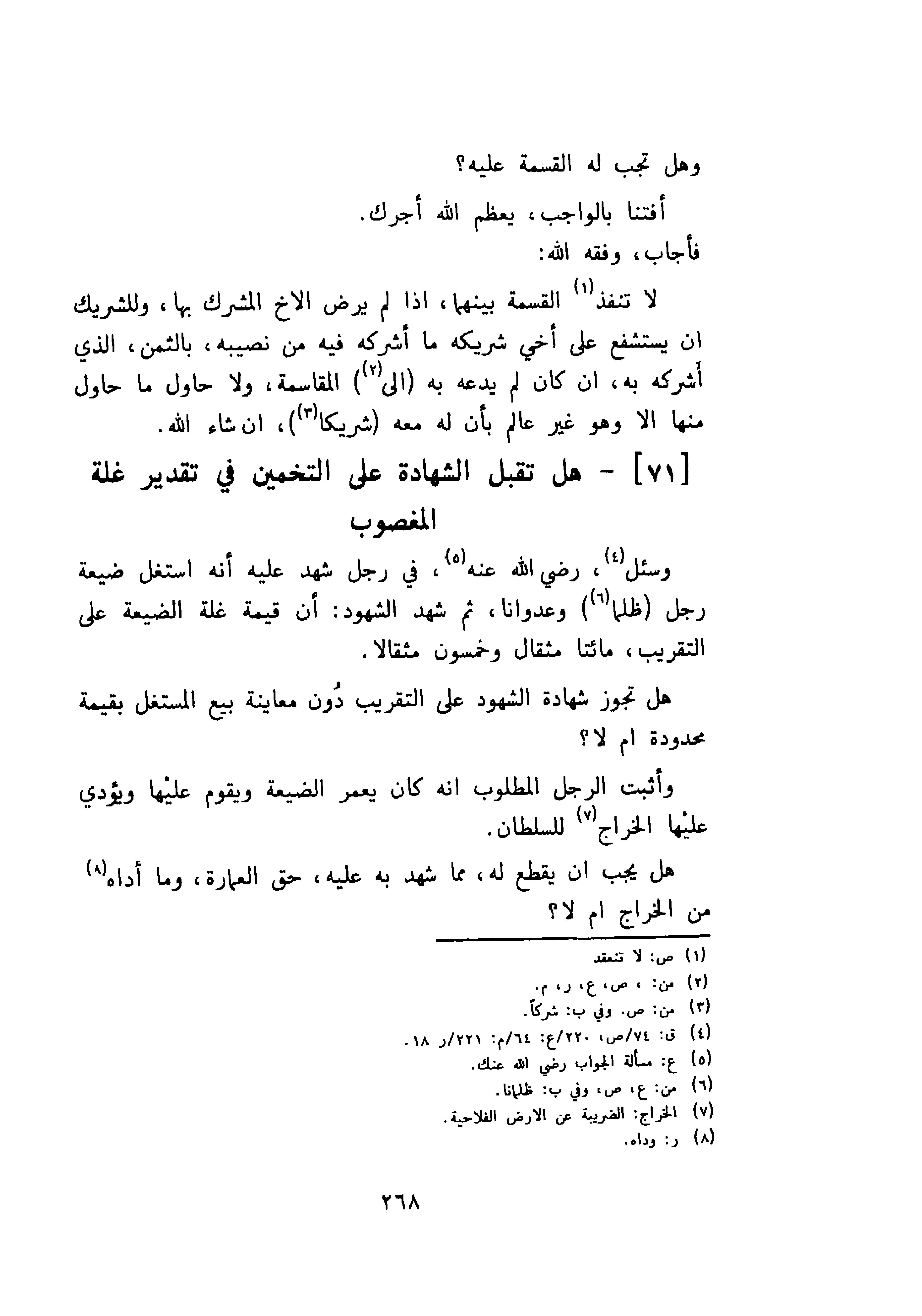 وأثبت الرجل المطلوب انه يعمر الضيعة ويقوم عليها ويؤدي عليها الخراج للسلطان.