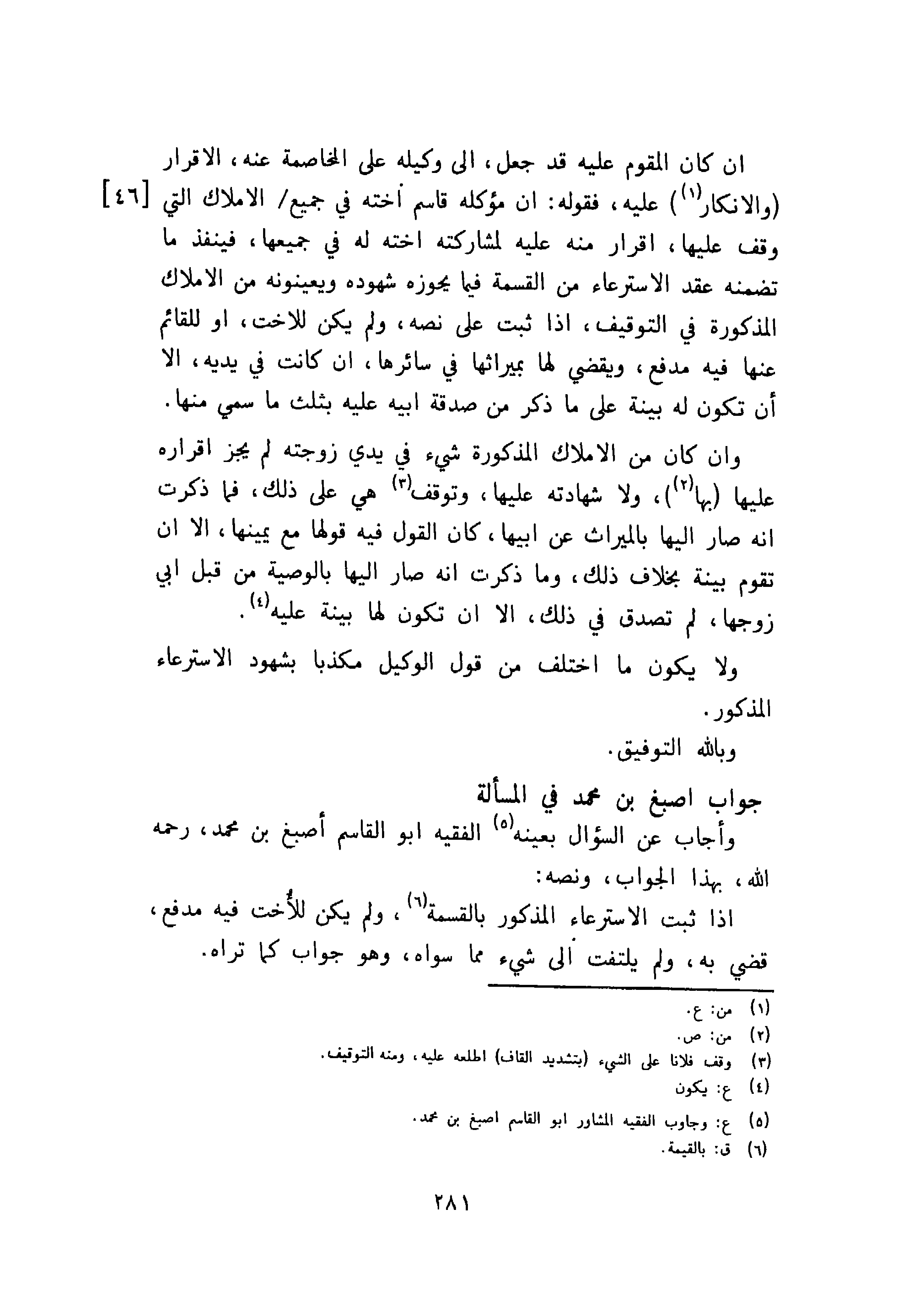 جواب أصبغ بن محمد في المسألة