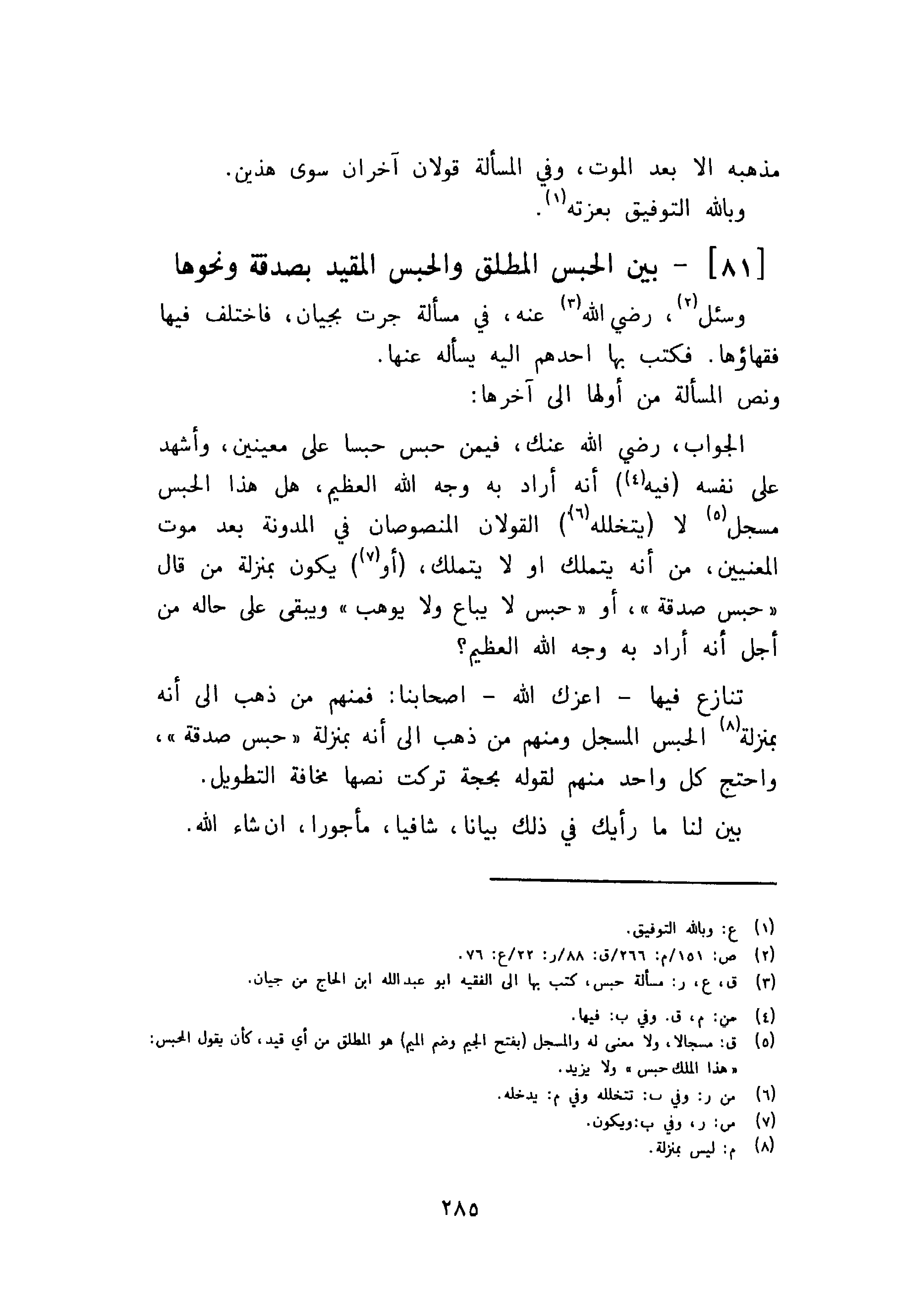 [81]- بين الحبس المطلق والحبس المقيد بصدقة ونحوها