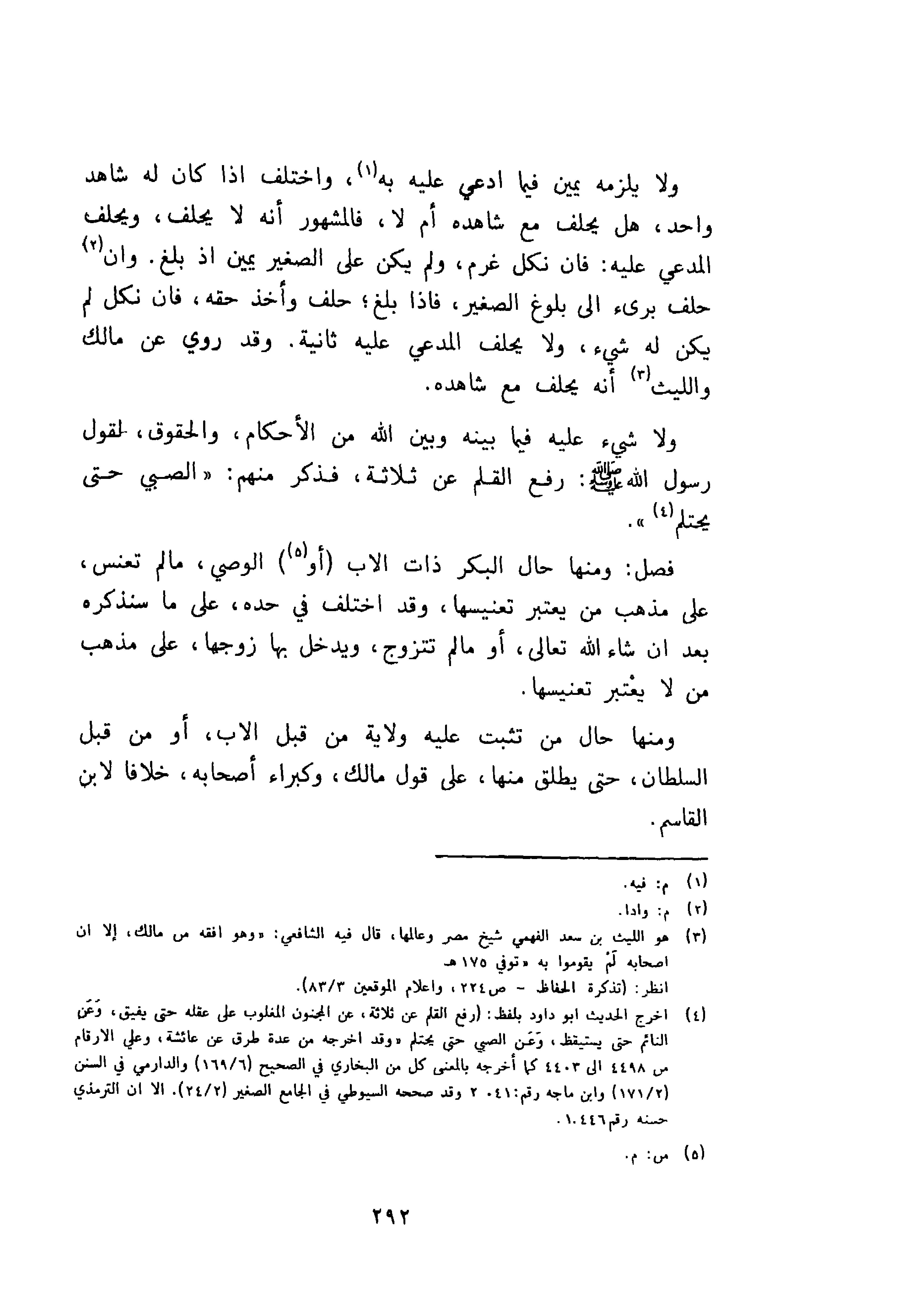 ولا شيء عليه فيما بينه وبين الله من الاحكام، والحقوق، لقول رسول الله صلى الله عليه وسلم رفع القلم عن ثلاثة، فذكر منهم: "الصبي حتى يحتلم "