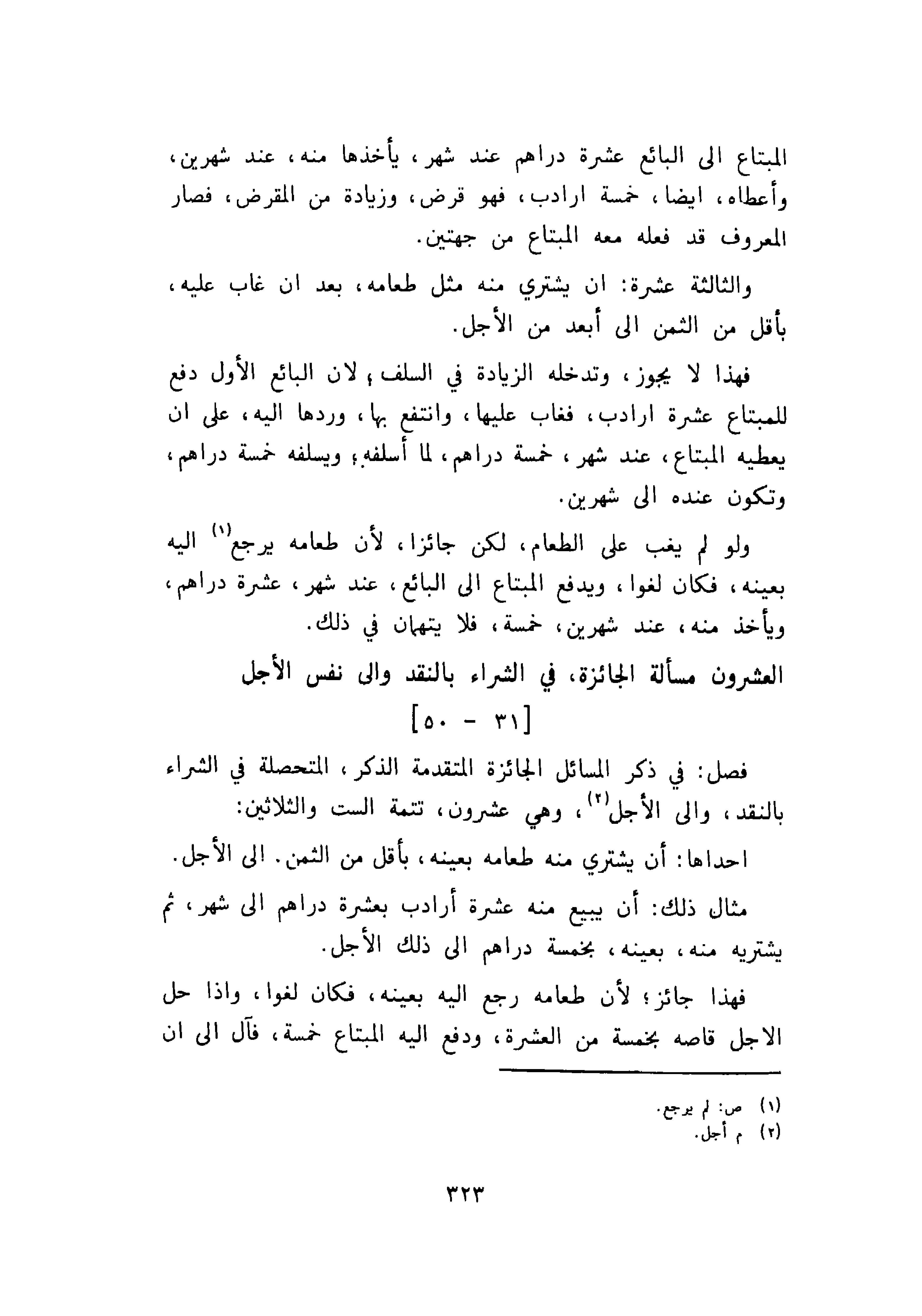 العشرون مسألة الجائزة، في الشراء بالنقد والى نفس الأجل