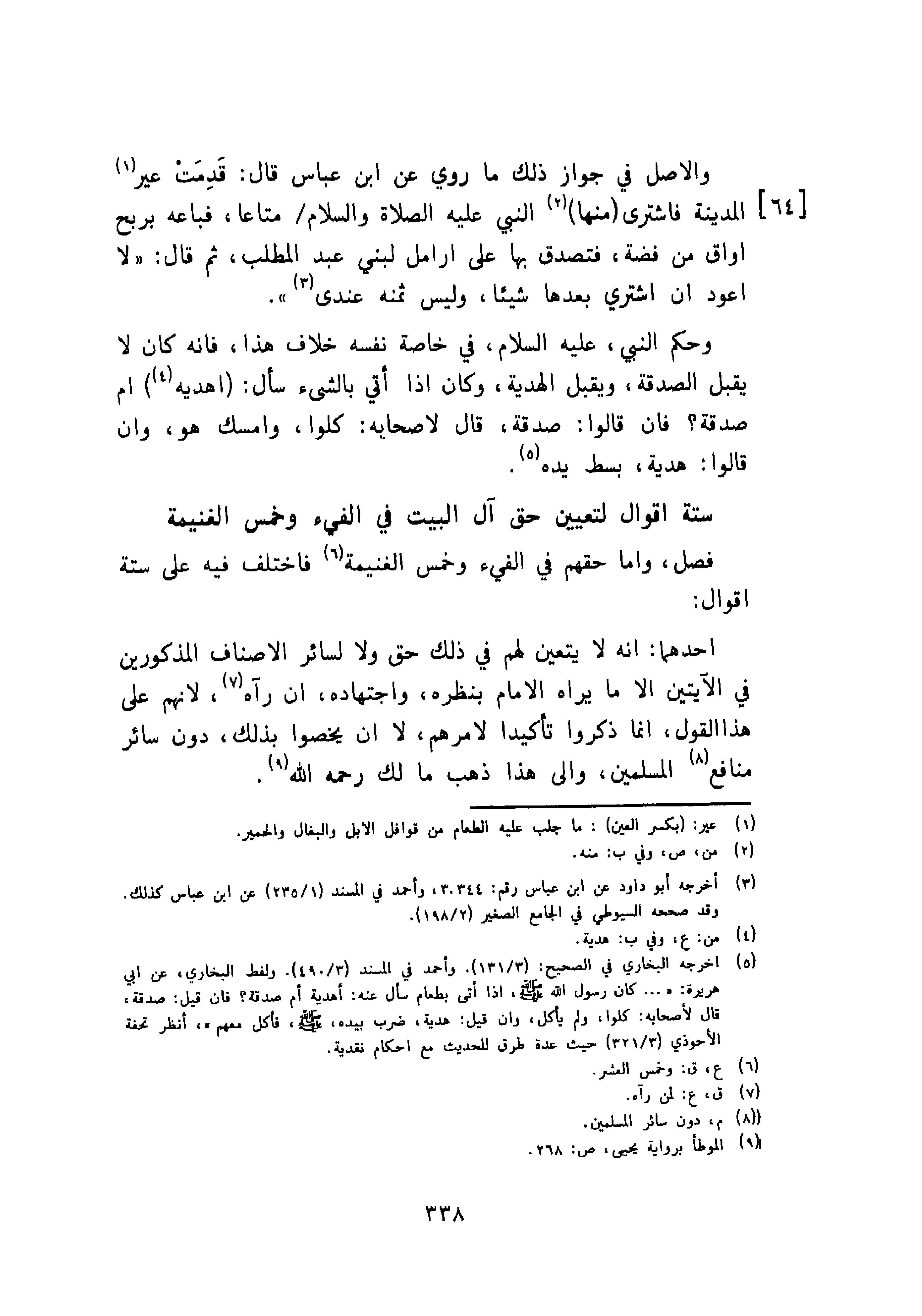ستة اقوال لتعيين آل البيت في الفيء وخمس الغنيمة