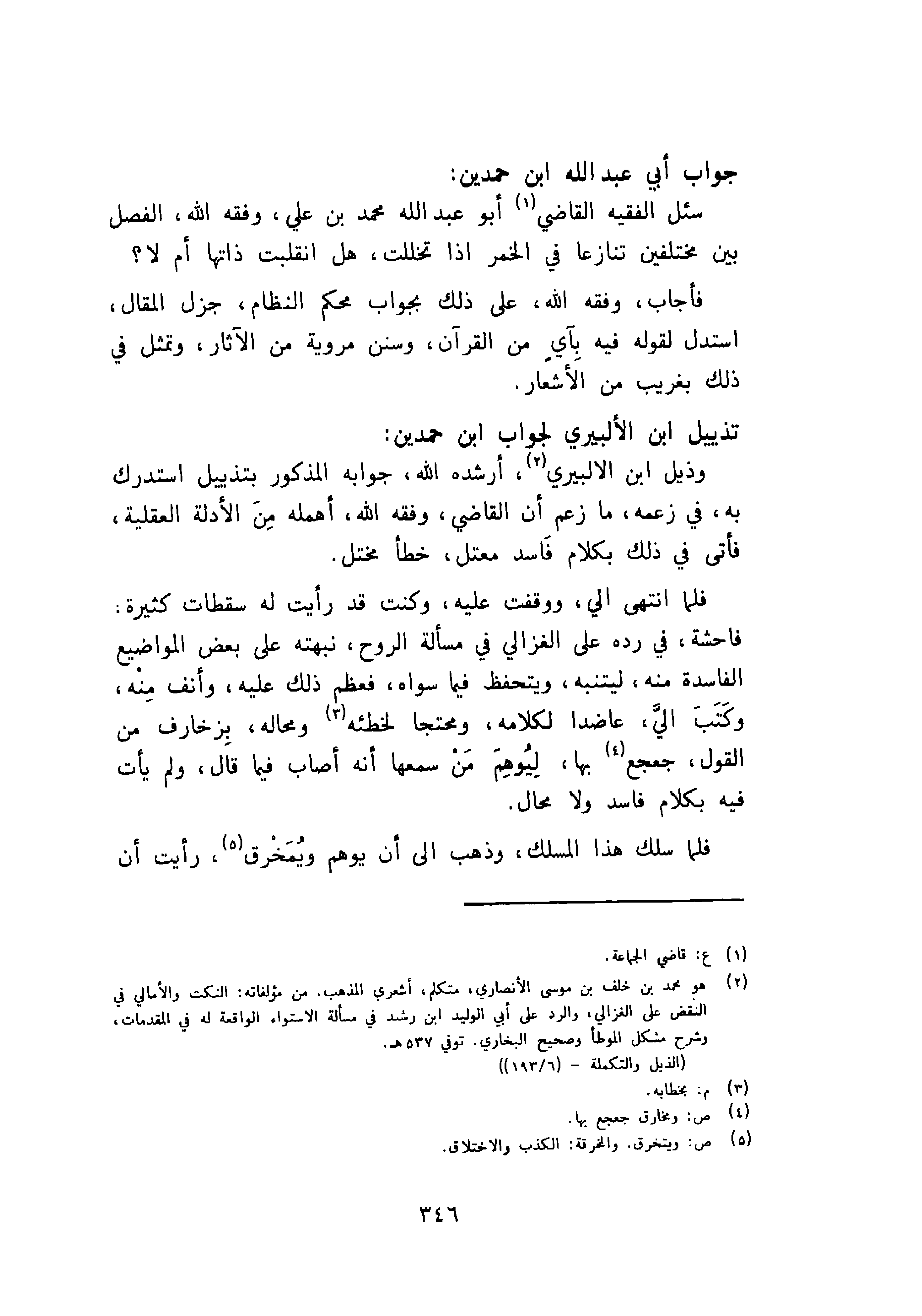 جواب أبي عبد الله ابن حمدين: