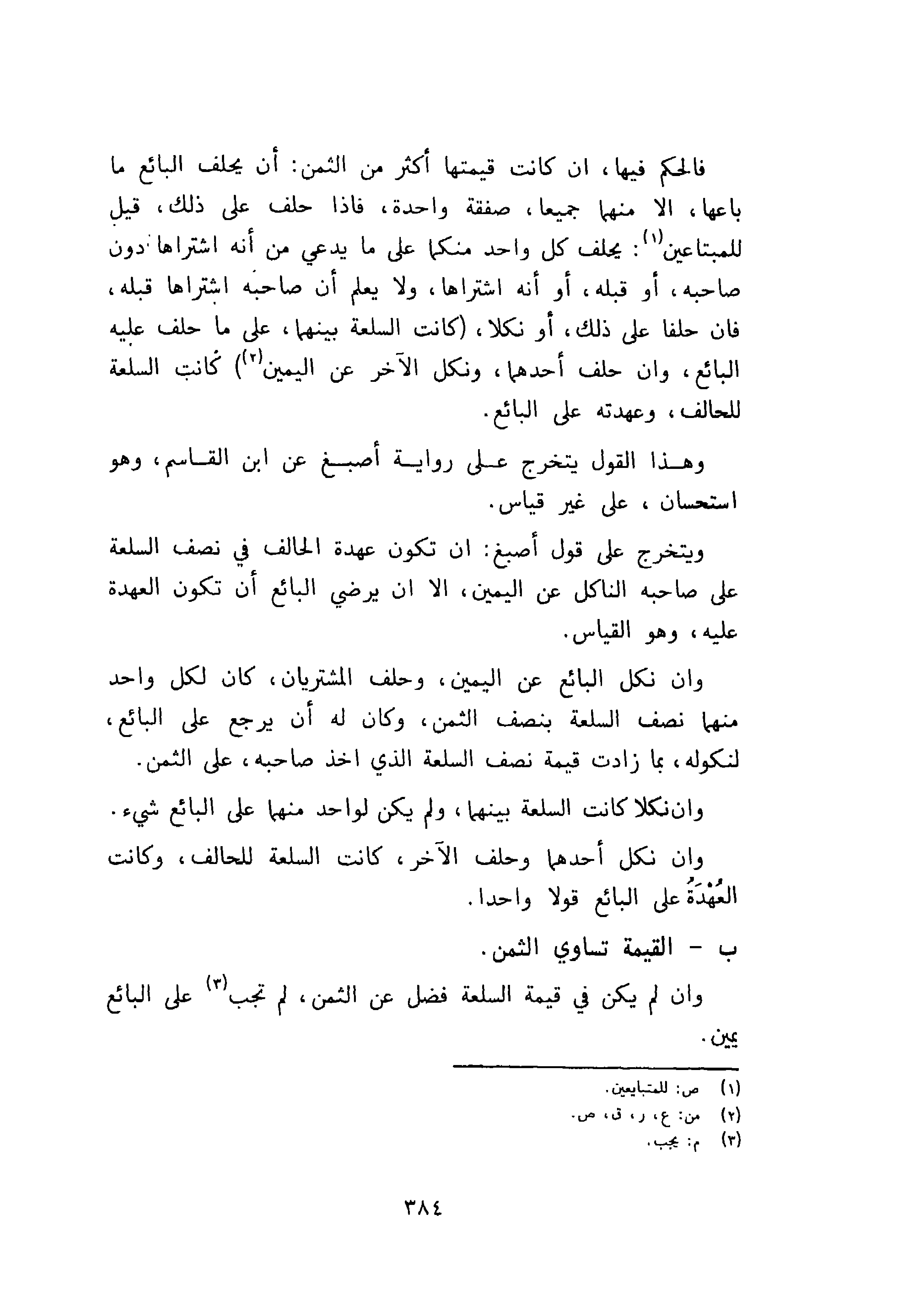 وان نكل البائع عن اليمين، وحلف المشتريان، وكان لكل واحد منهما نصف السلعة بنصف الثمن وكان له أن يرجع على البائع، لنكوله بما زادت قيمة نصف السلعة الذي اخذ صاحبه، على الثمن.