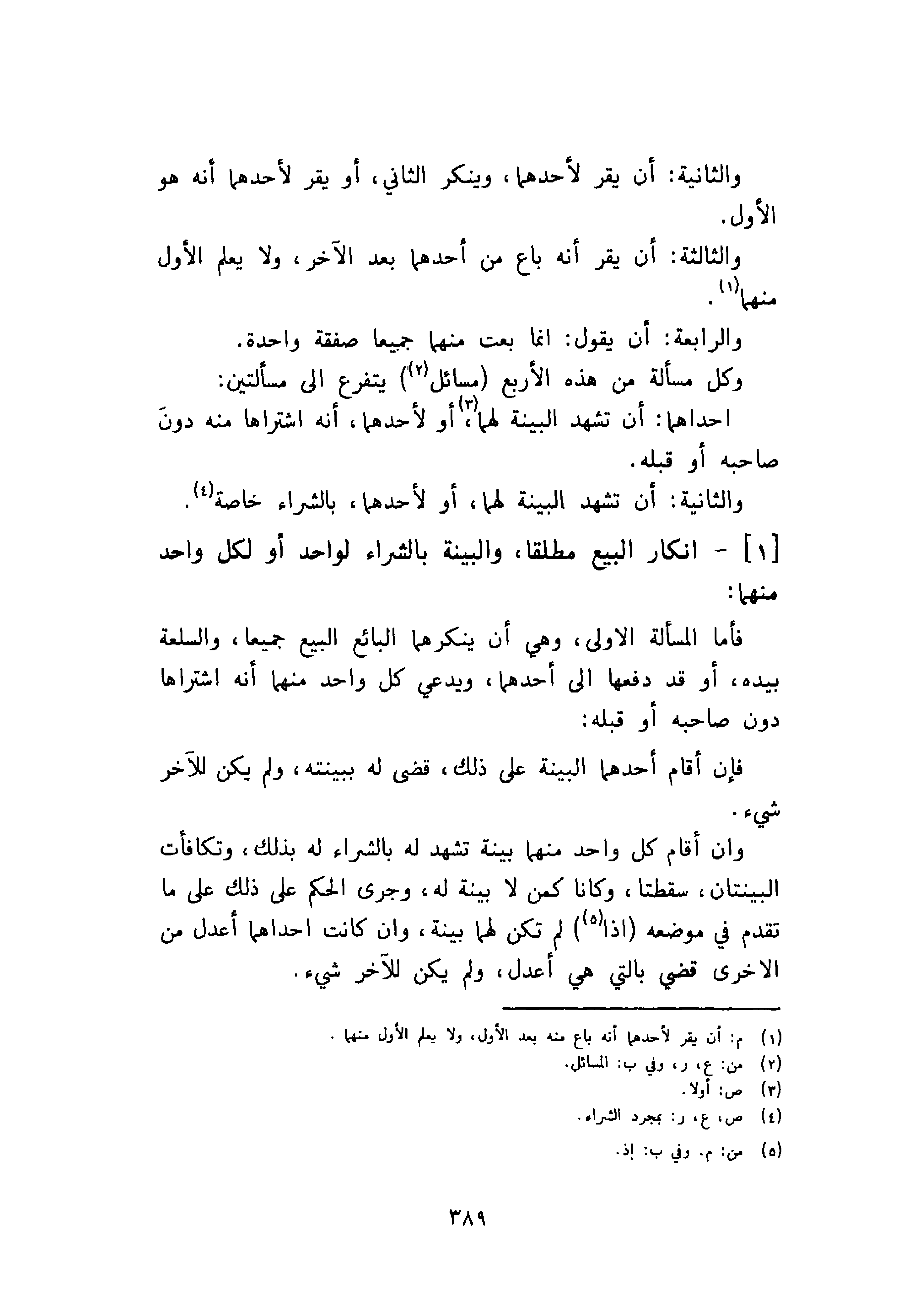 [1]- انكار البيع مطلقا، البينة بالشراء لواحد أو لكل واحد منهما: