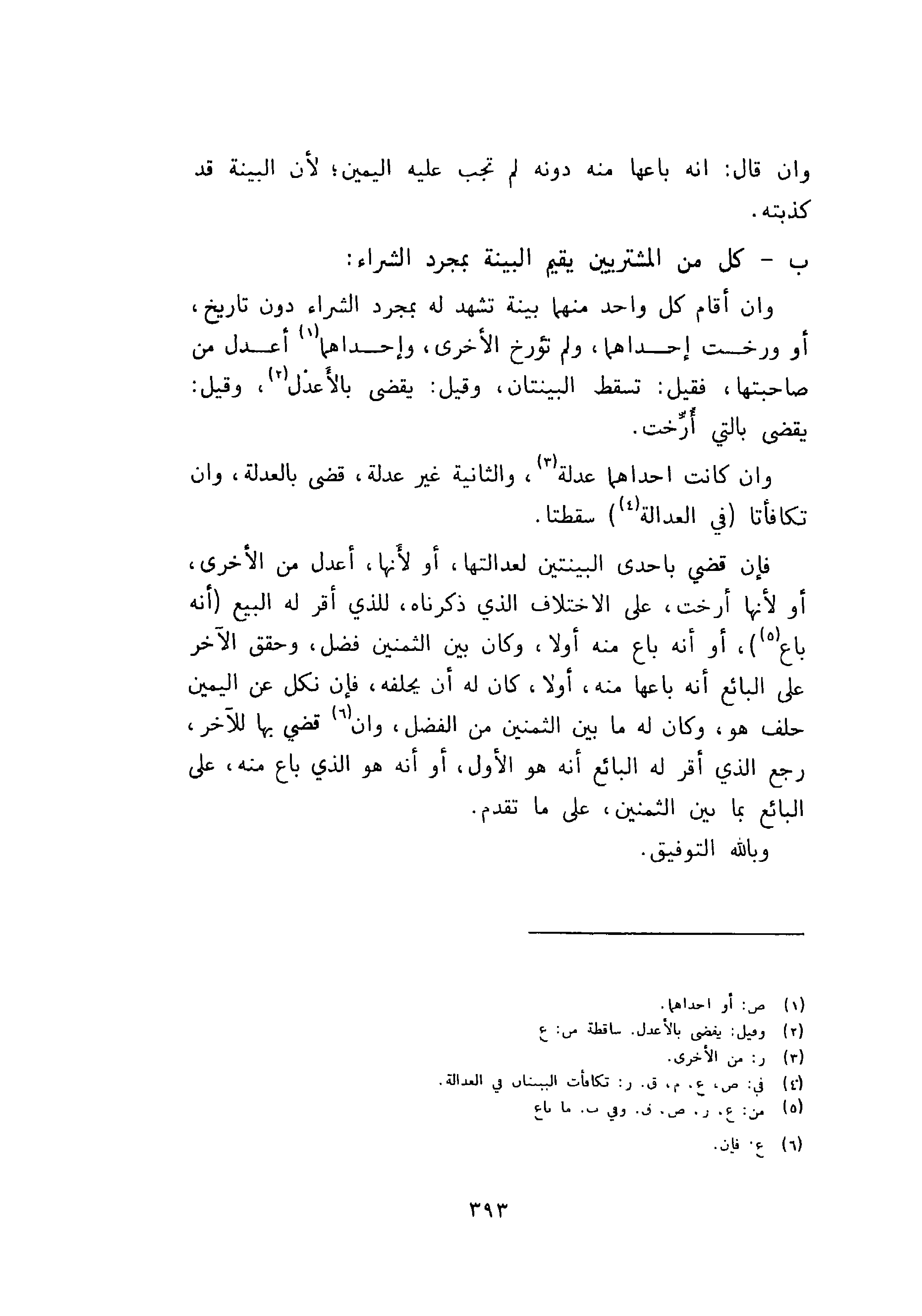 وان أقام كل واحد منهما بينة تشهد له بمجرد الشراء دون تاريخ، أو ورخت إحداهما، ولم تؤرخ الأخرى، إحداهما أعدل من صاحبتها، فقيل: تسقط البيتان، وقيل: يقضى بالاعدل، وقيل: يقضى بالتي أرخت.