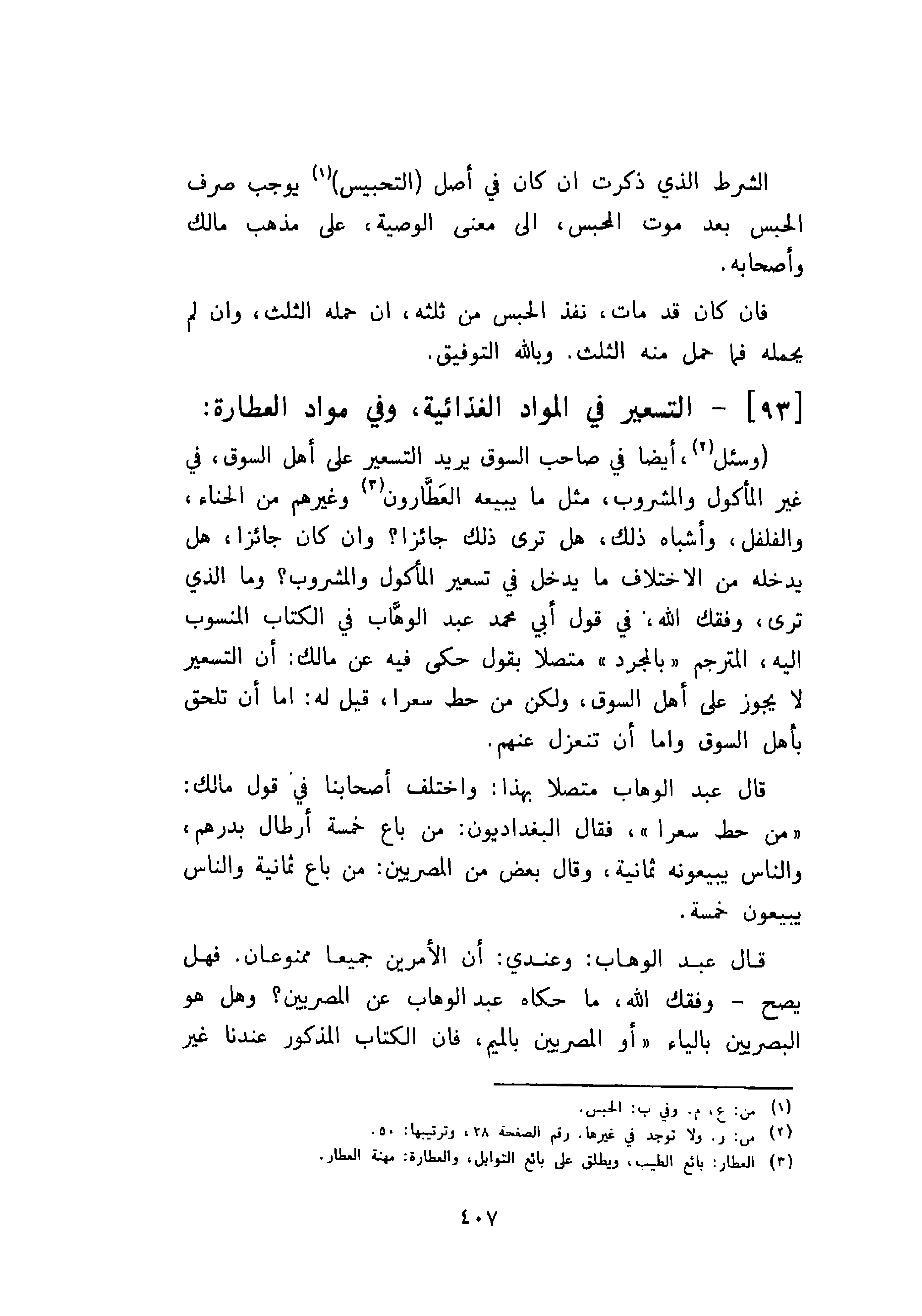 [93]- التسعير في المواد الغذائية، وفي مواد العطارة: