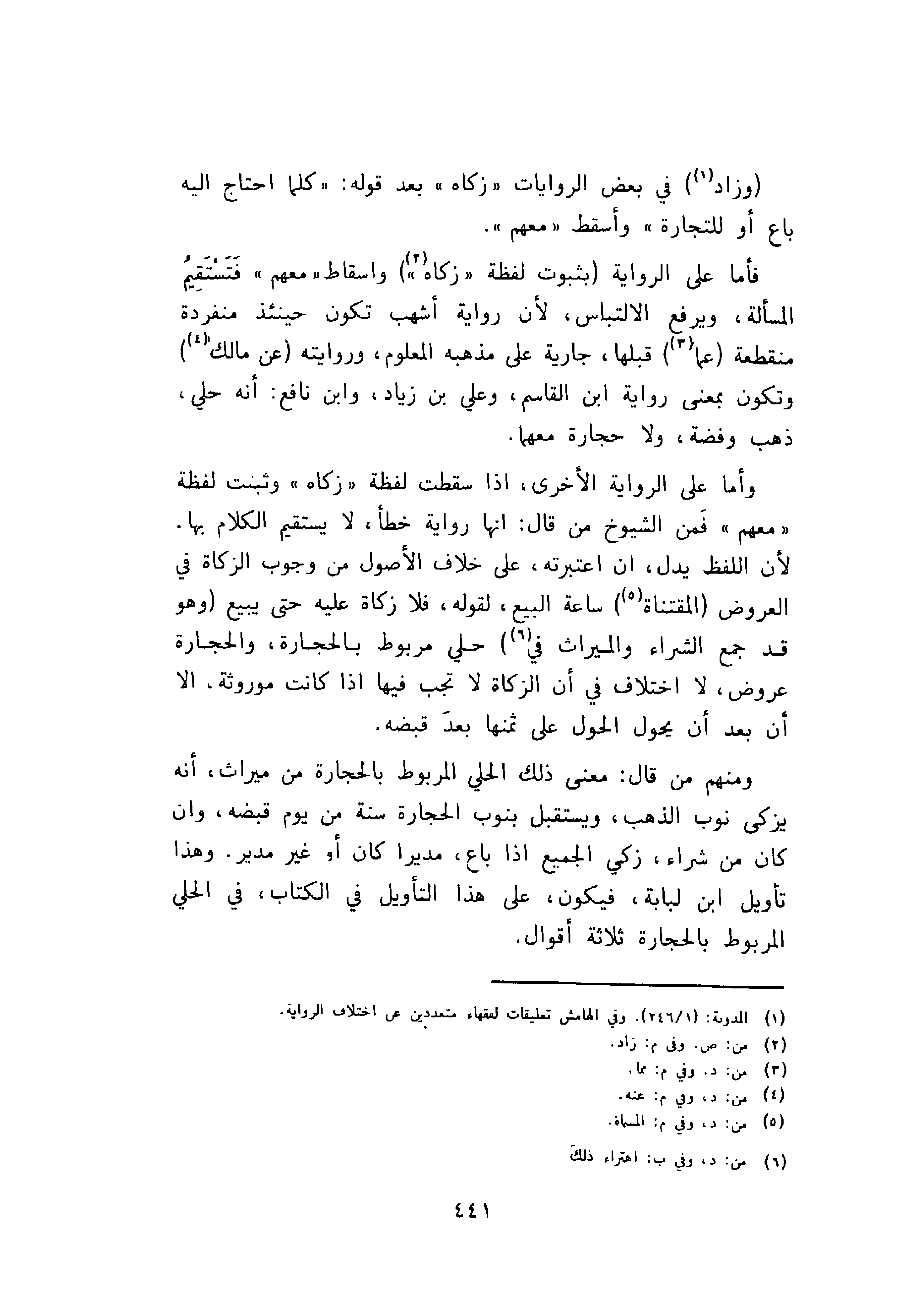 فأما على الرواية بثبوت لفظه زكاه واسقاط معهم فتستقيم المسألة، ويرفع الالتباس، لأن رواية أشهب تكون حينئذ منفردة منقطعة عما قبلها جارية على مذهبه المعلوم، وروايته عن مالك وتكون بمعنى رواية ابن القاسم، وعلي بن زياد، وابن نافع: أنه حلي، ذهب وفضة، ولا حجارة معهما.