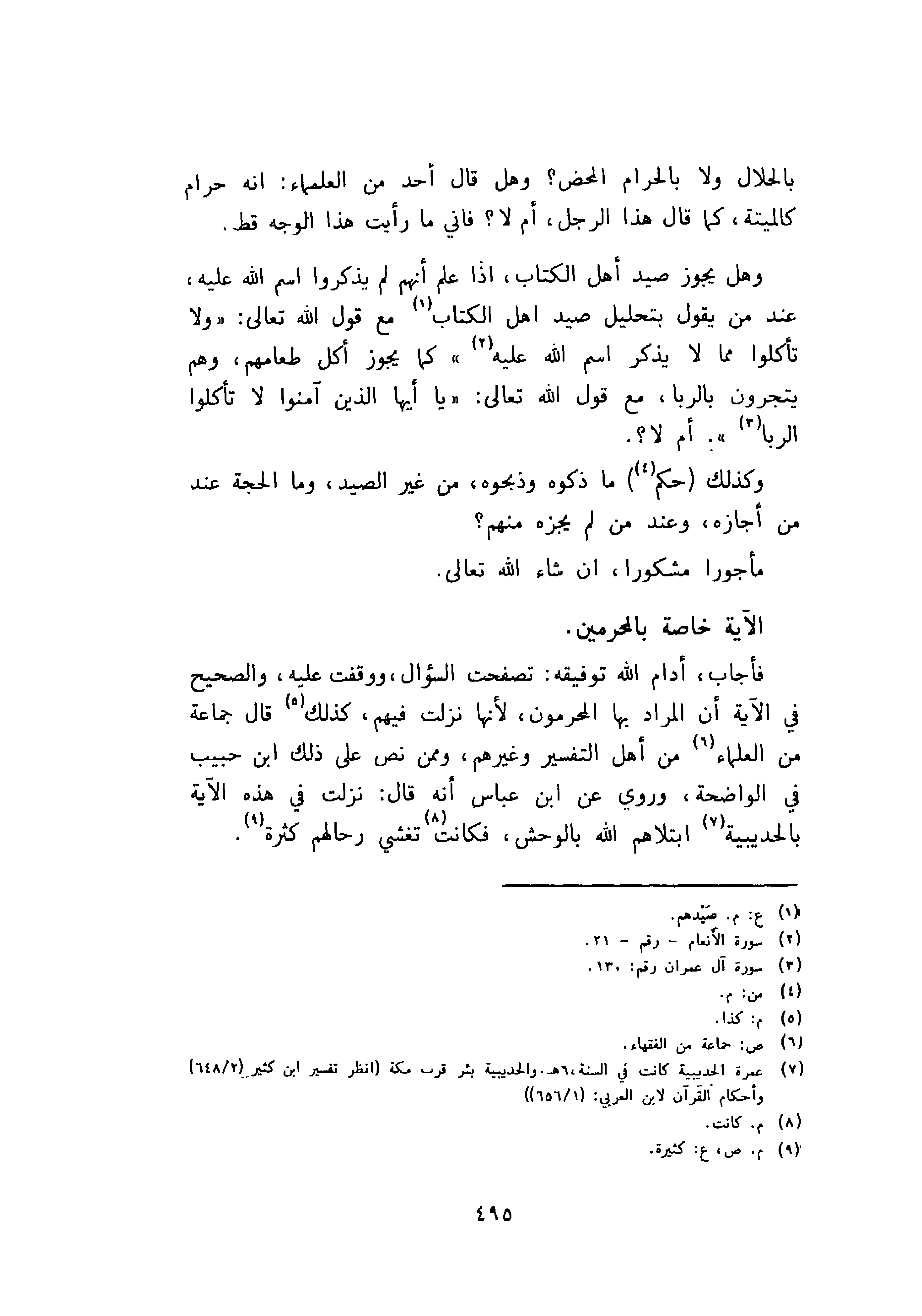 بالحلال ولا الحرام المحض؟ وهل قال أحد من العلماء: انه حرام كالميتة، كما قال هذا الرجل، أم لا؟ فاني ما رأيت هذا الوجه قط.