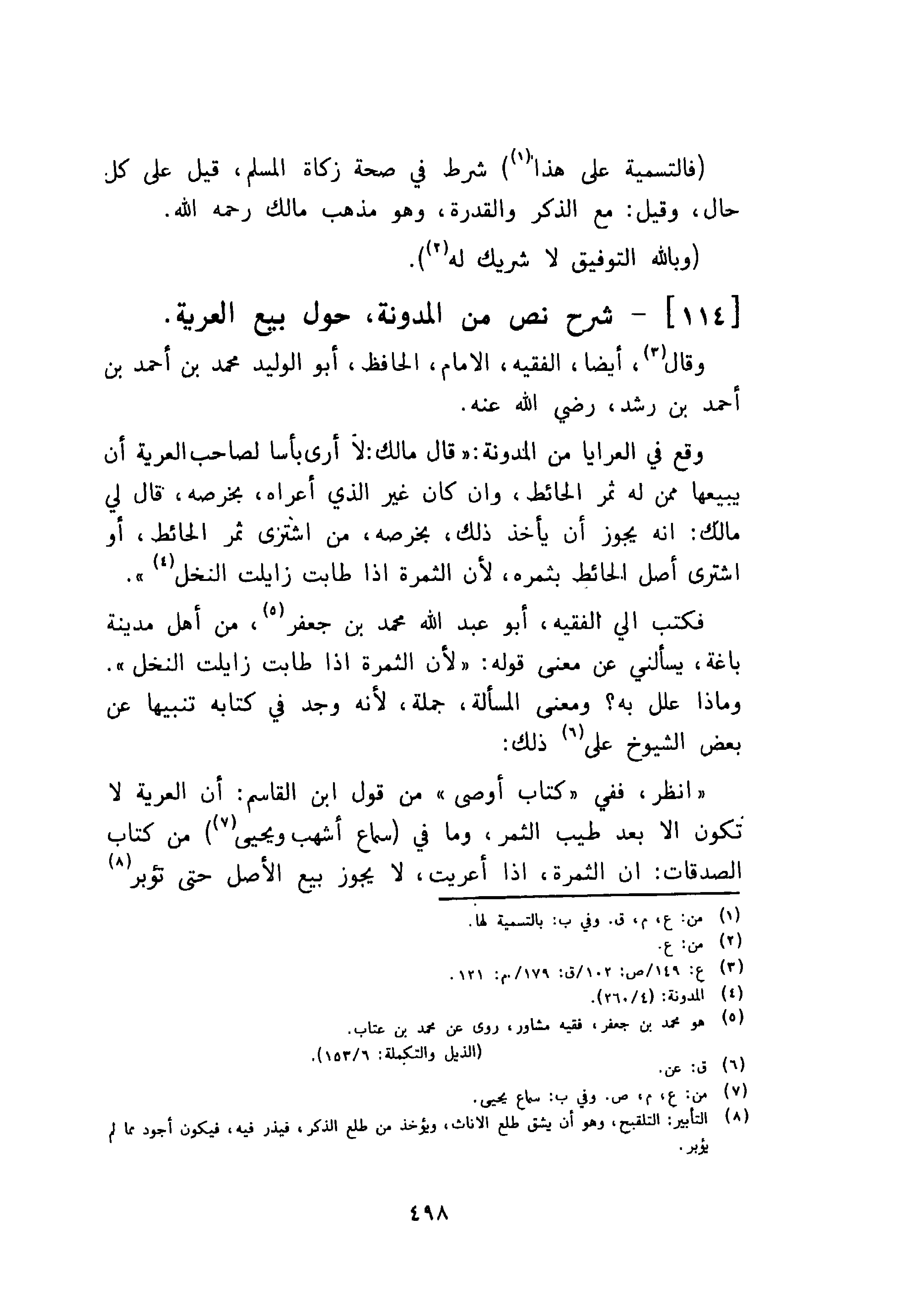 [114]- شرح نص من المدونة، حول بيع العرية.