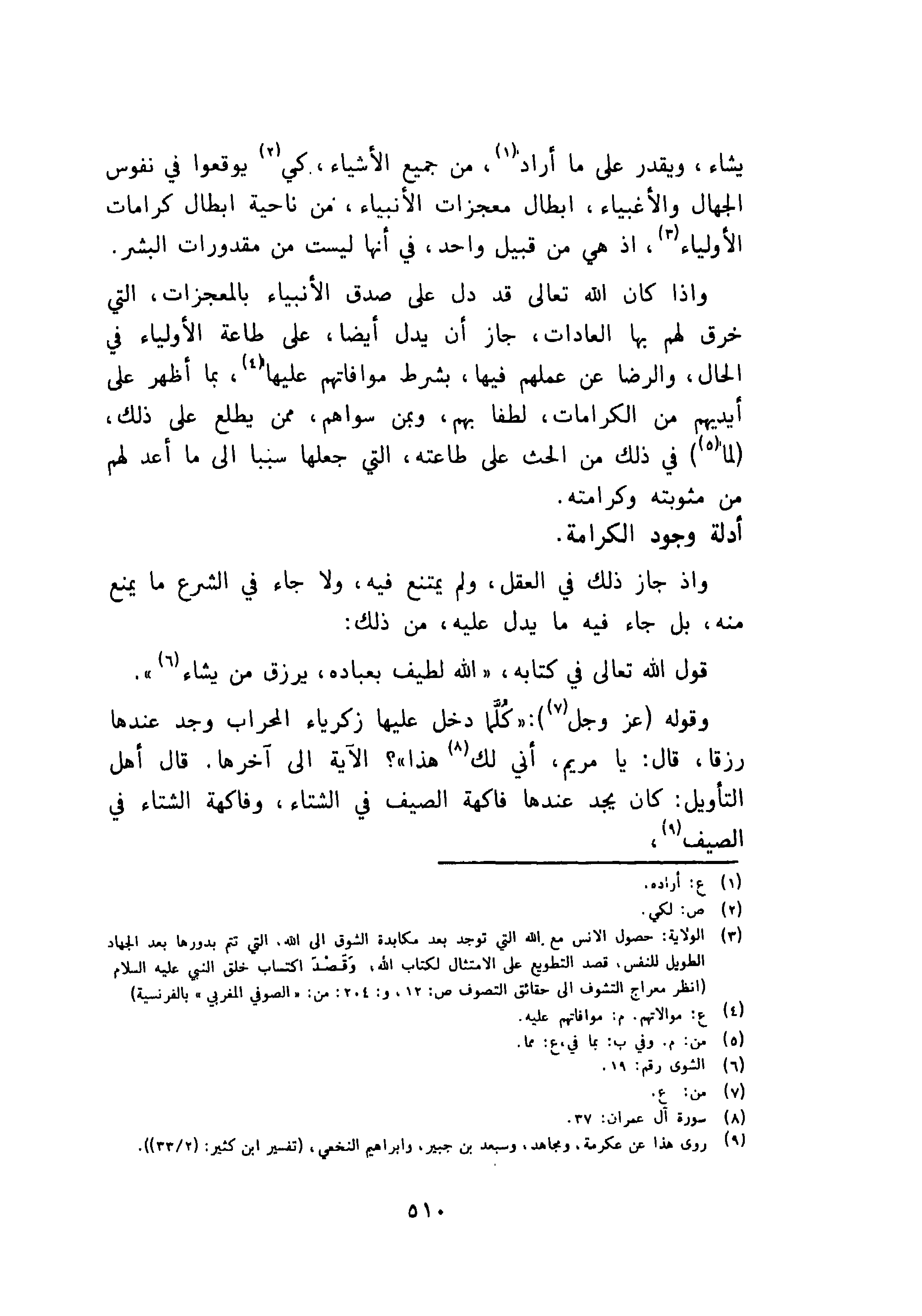 يشاء، ويقدر على ما أراد، من جميع الأشياء كي يوقعوا في نفوس الجهال والأغبياء، ابطال معجزات الأنبياء، من ناحية ابطال كرامات الأولياء، اذ هي من قبيل واحد، في أنها ليست من مقدورات البشر.