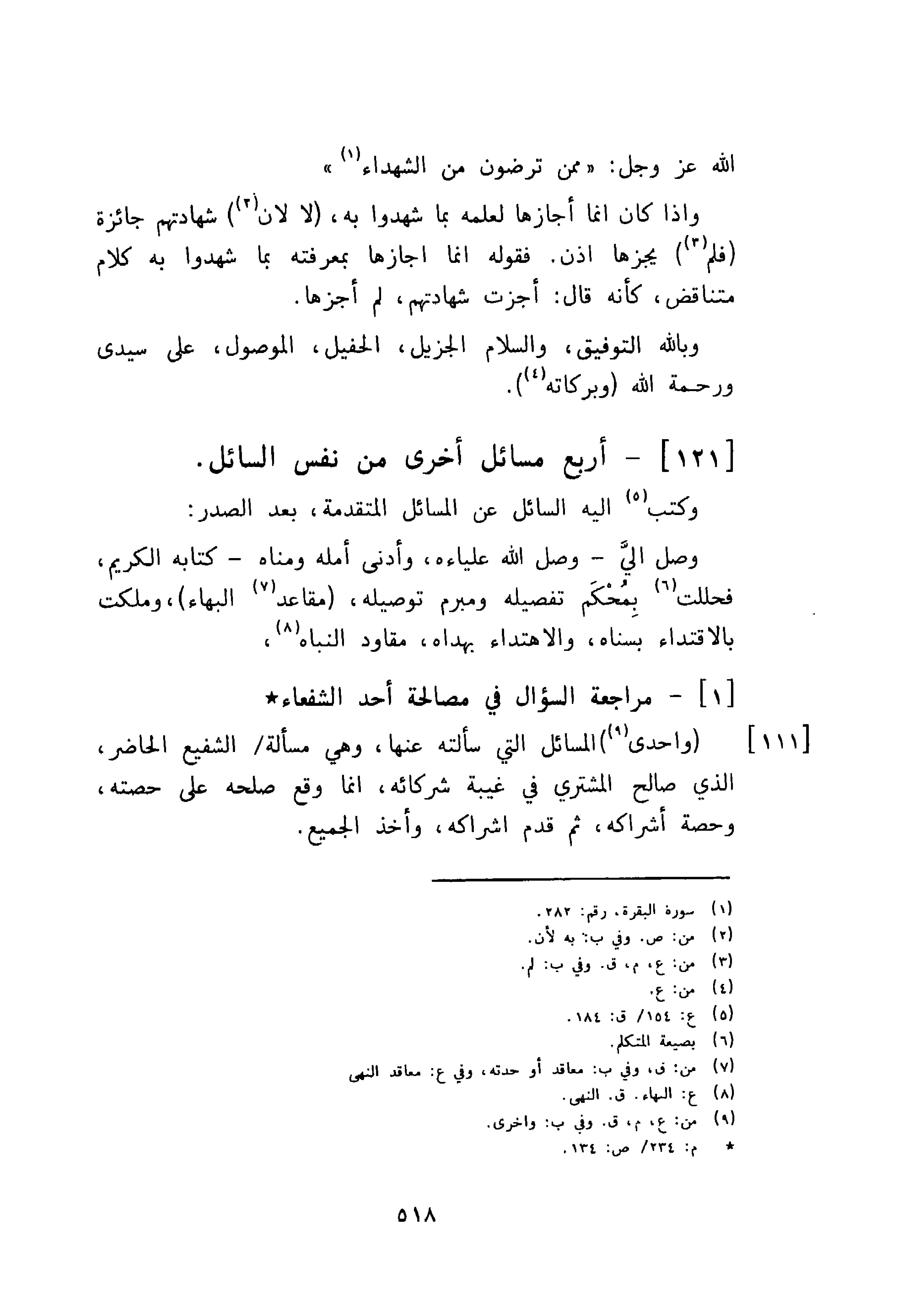[1]- مراجعة السؤال في مصالحة أحد الشفعاء