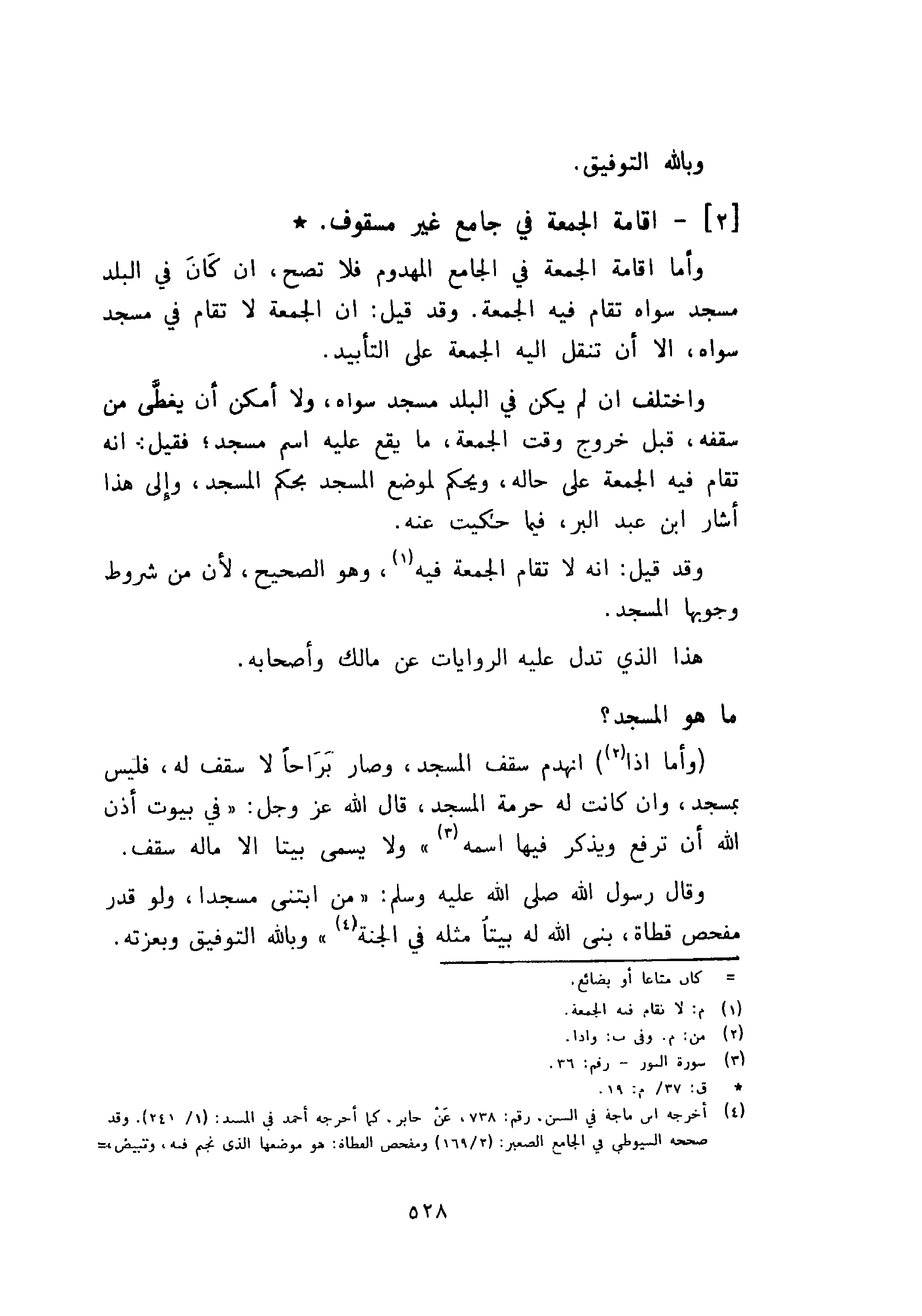 [2]- إقامة الجمعة في جامع غير مسقوف