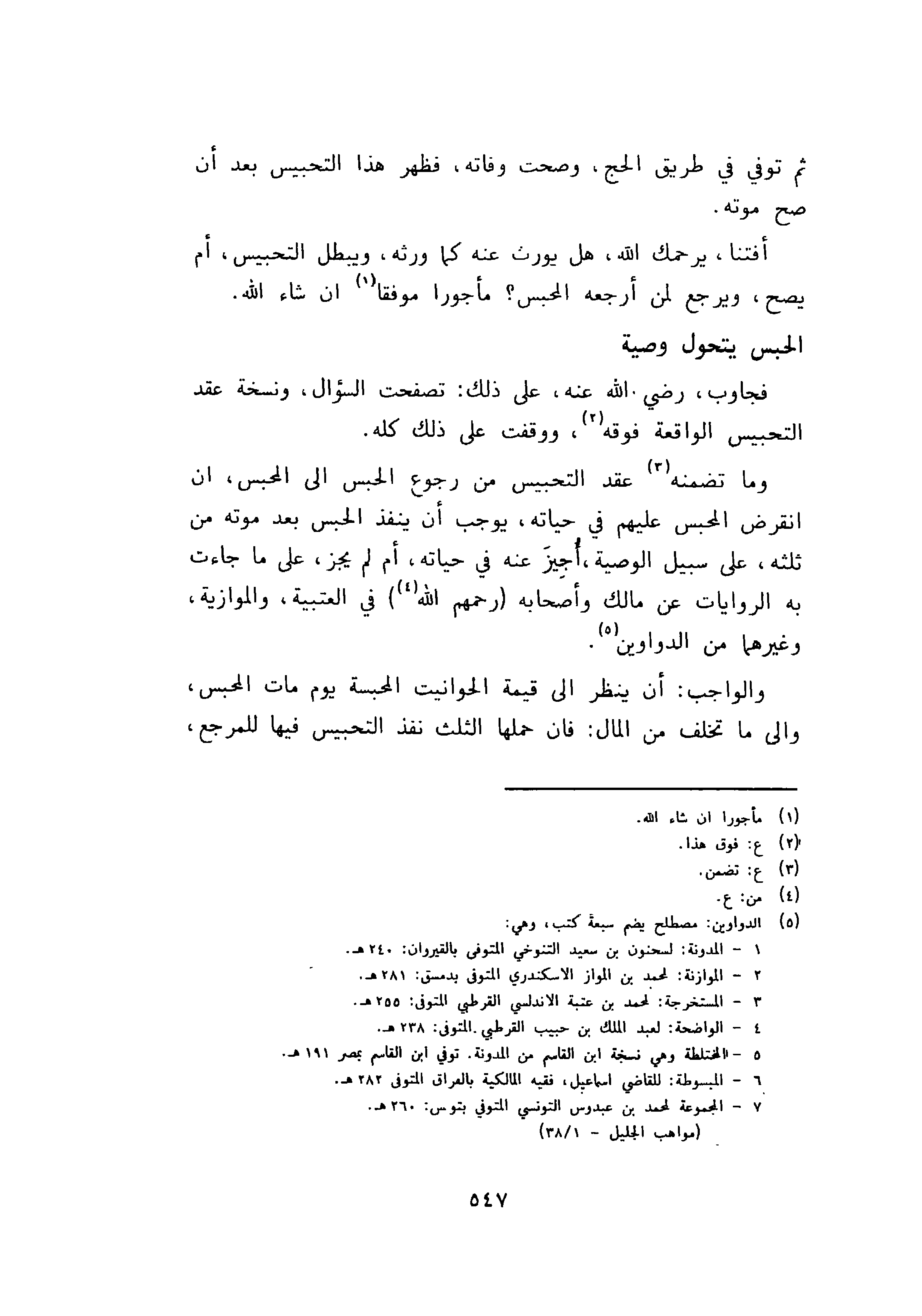 فجاوب، رضي الله عنه، على ذلك: تصفحت السؤال، ونسخة عقد التحبيس الواقعة فوقه، ووقفت على ذلك كله.