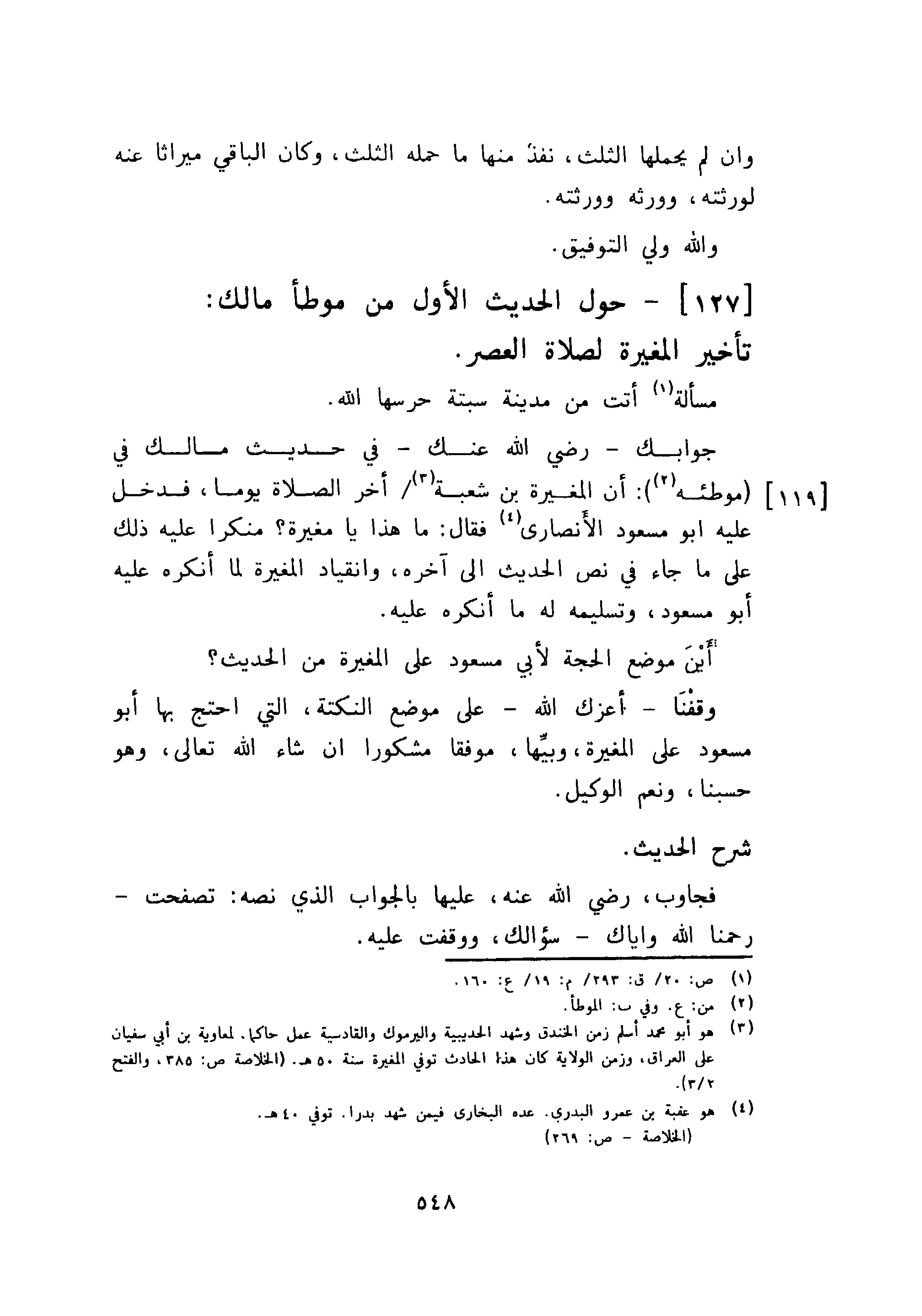 وقفنا - أعزك الله - على موضع النكتة، التي احتج بها أبو مسعود على المغيرة وبيها موفقا مشكورا ان شاء الله تعالى، وهو حسبنا، ونعم الوكيل.