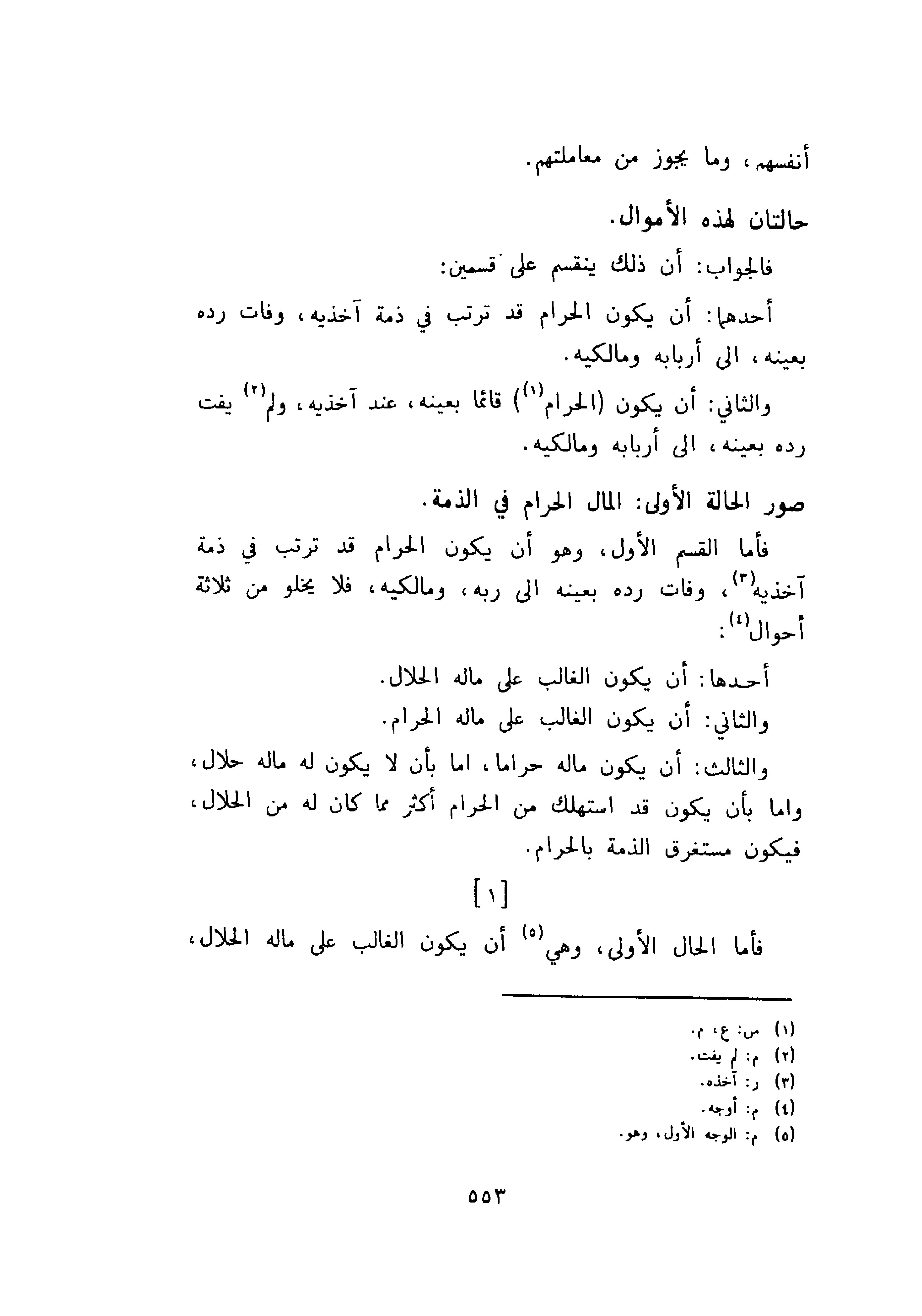 فأما الحال الأولى، وهى أن يكون الغالب على ماله الحلال،