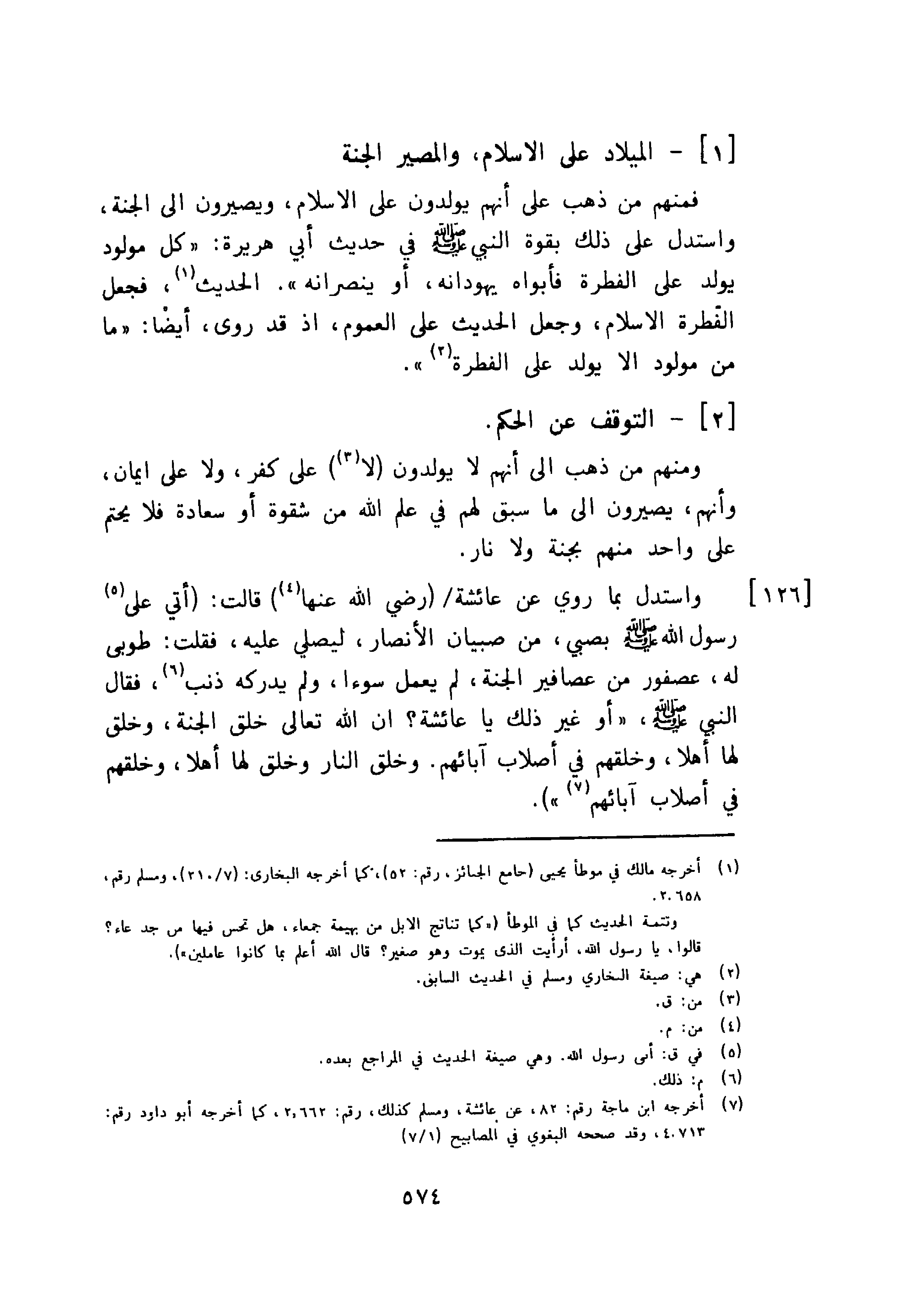 ومنهم من ذهب إلى أنهم لا يولدون لا على كفر، ولا على ايمان وأنهم، يصيرون إلى ما سبق لهم في علم الله من شقوة أو سعادة فلا يحتم على واحد منهم بجنة ولا نار.