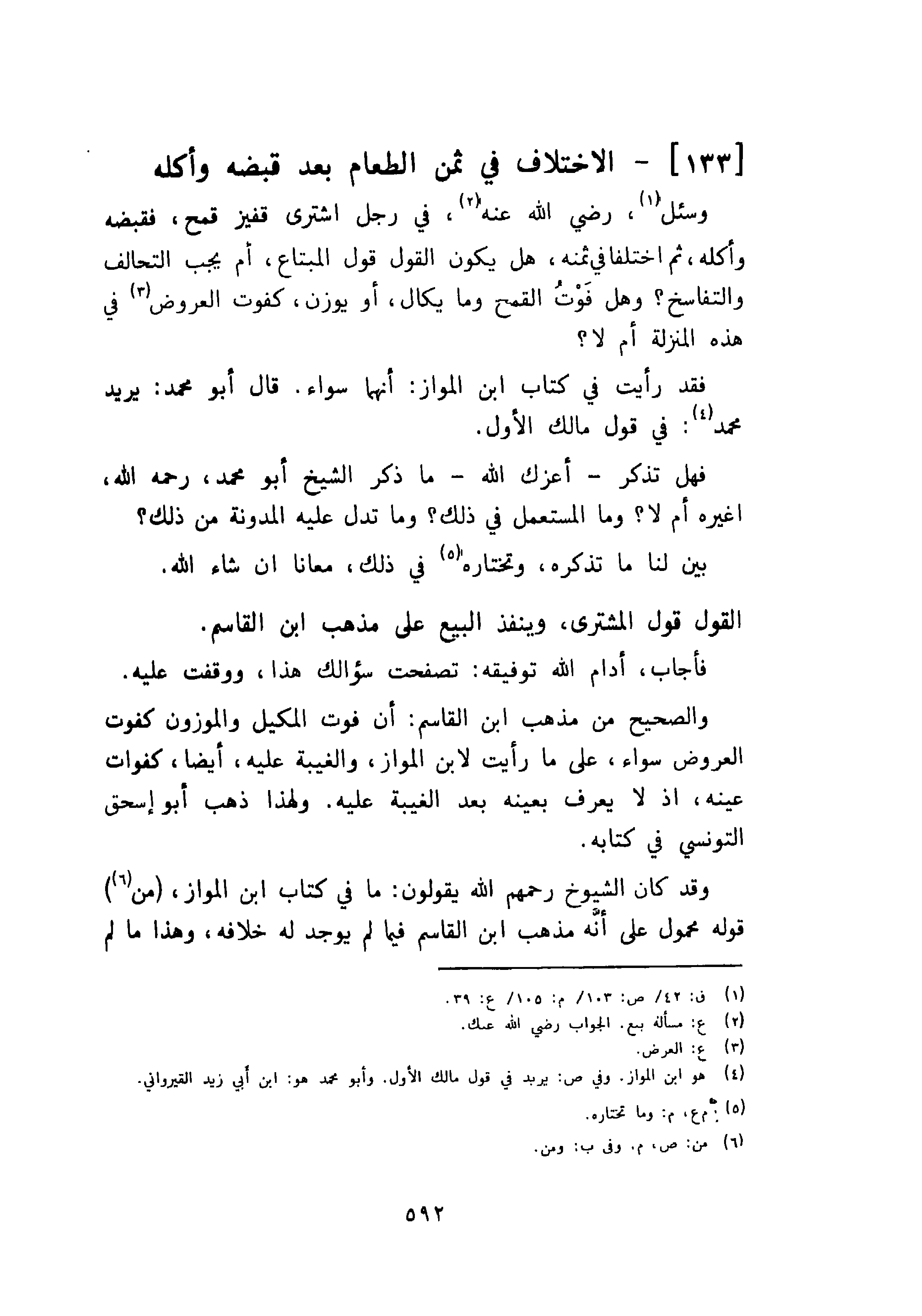 [133]- الاختلاف في ثمن الطعام بعد قبضه وأكله