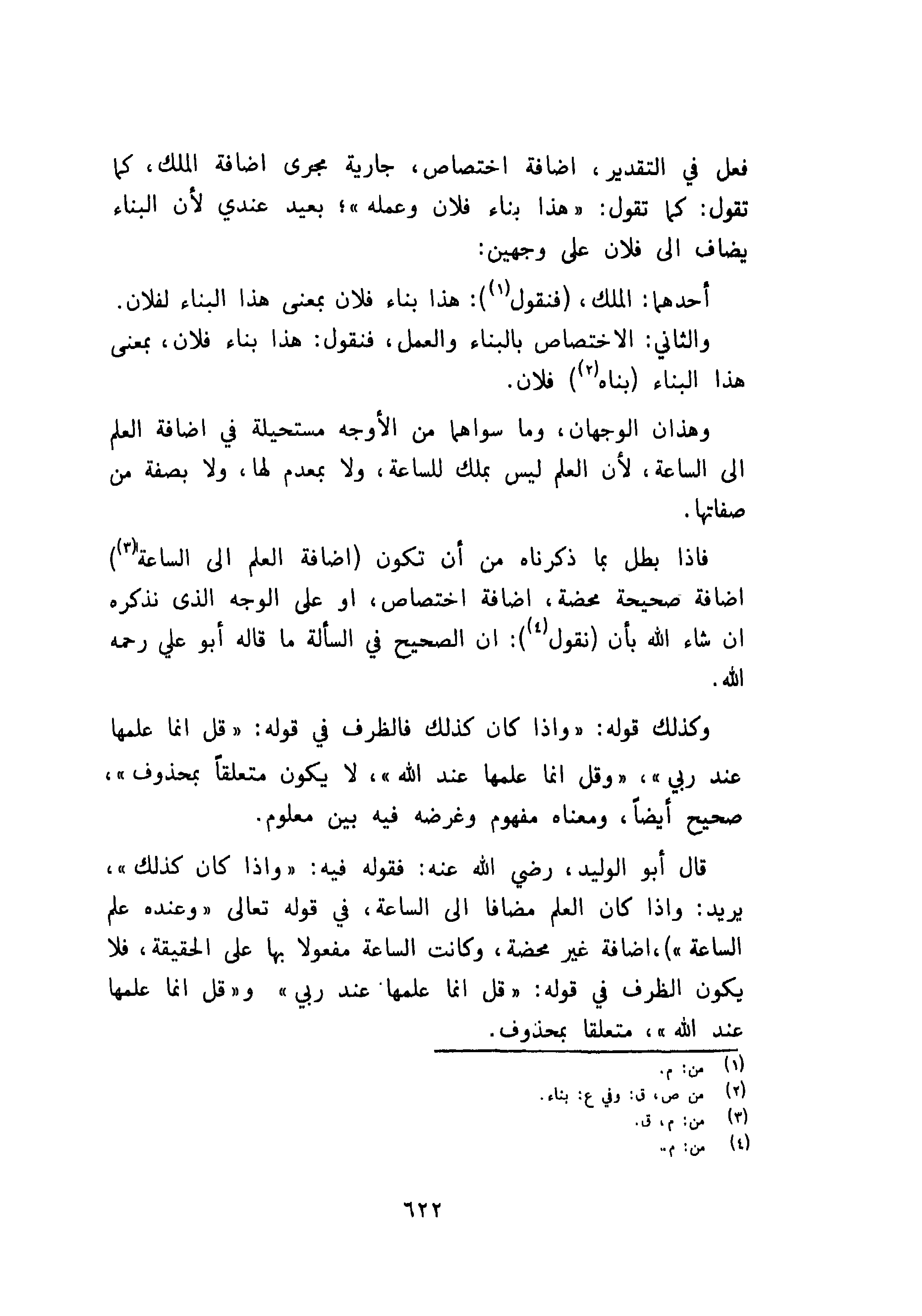 فاذا بطل بما ذكرناه من أن تكون اضافة العلم إلى الساعة اضافة صحيحة محضة، اضافة اختصاص، او على الوجه الذى نذكره ان شاء الله بأن نقول: ان الصحيح في السألة ما قاله أبو علي رحمه الله.