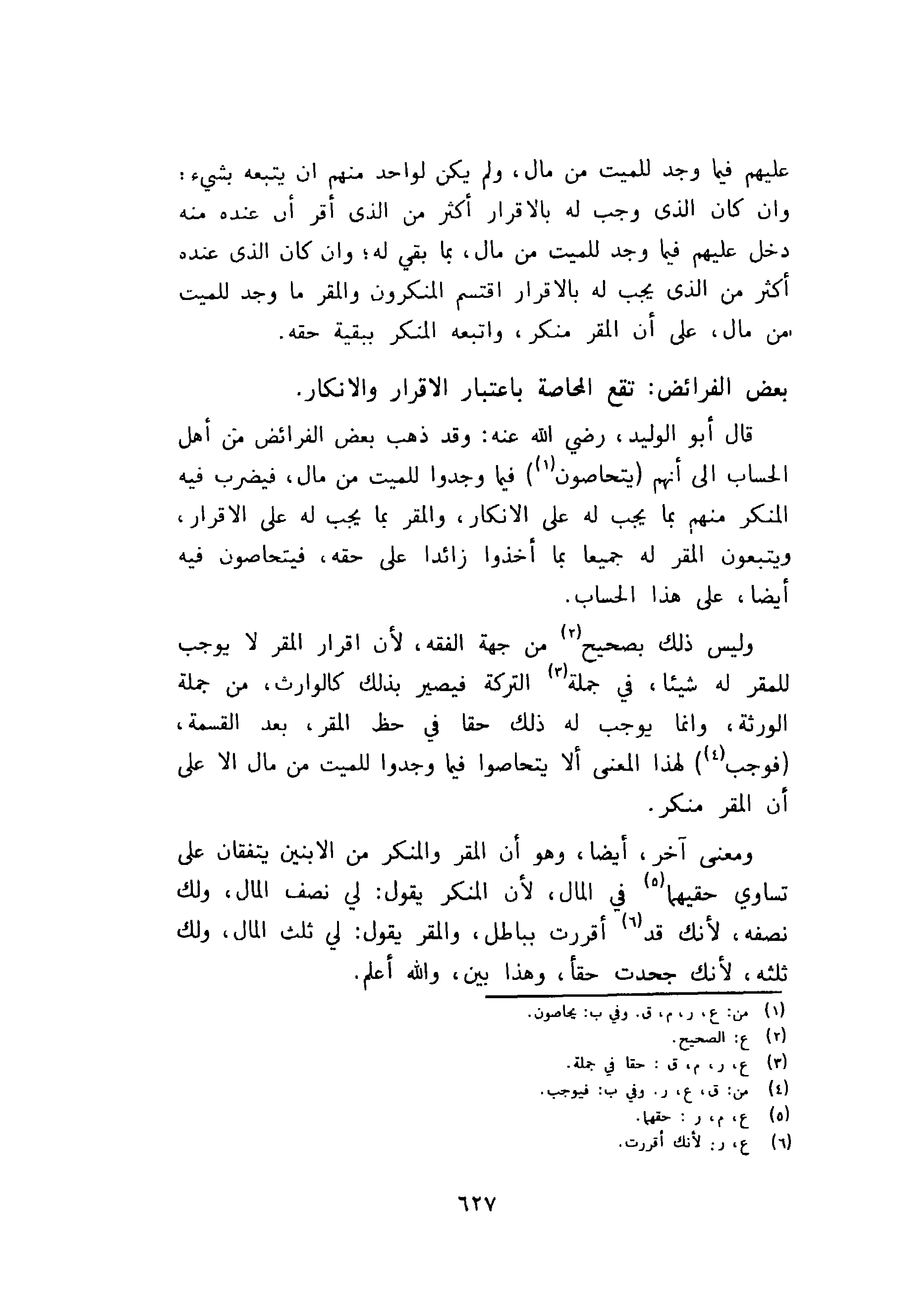 بعض الفرائض: تقع المحاصة باعتبار الاقرار والانكار.