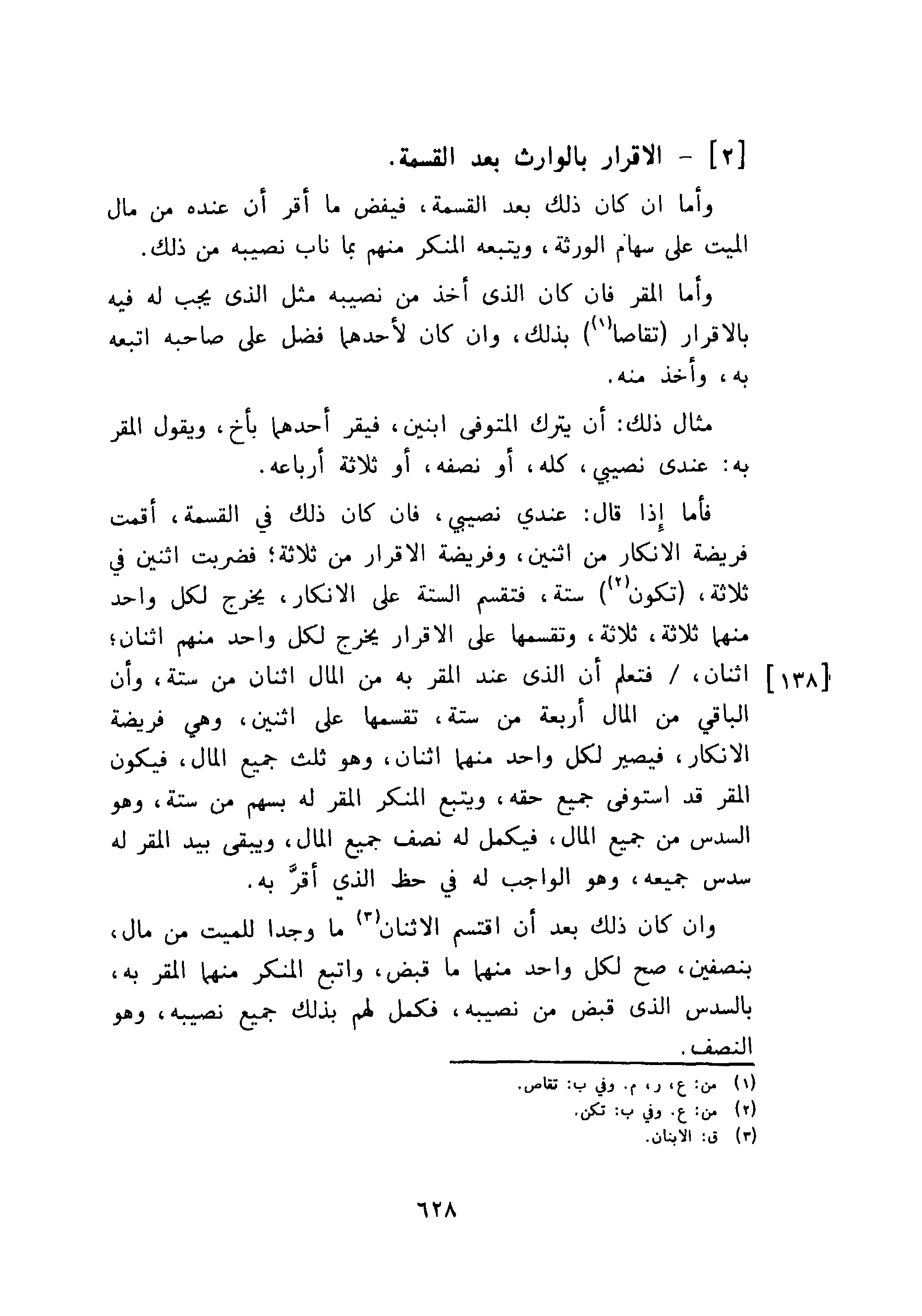 [2]- الاقرار بالوارث بعد القسمة.