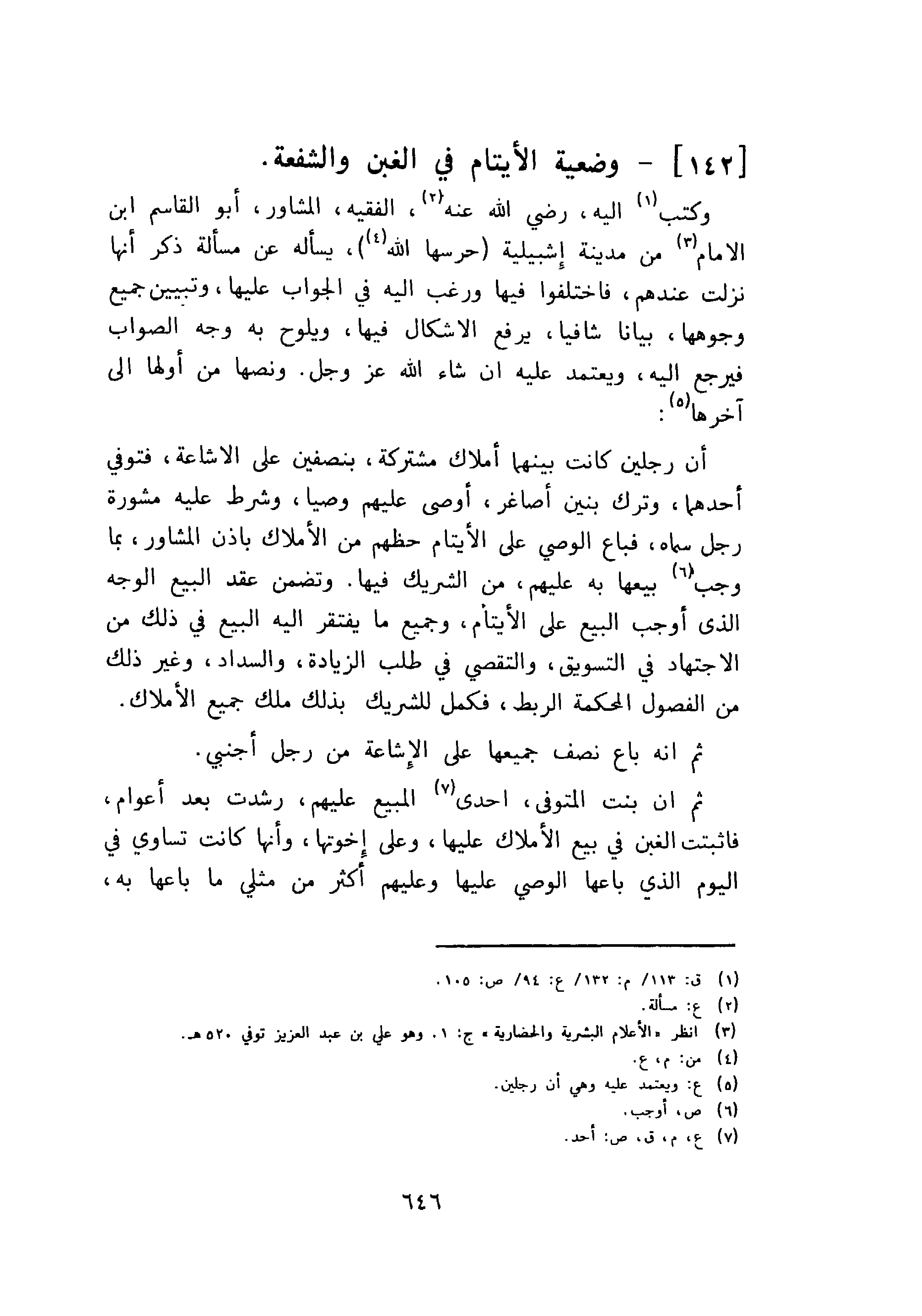 [142]- وضعية الأيتام في الغبن والشفعة.