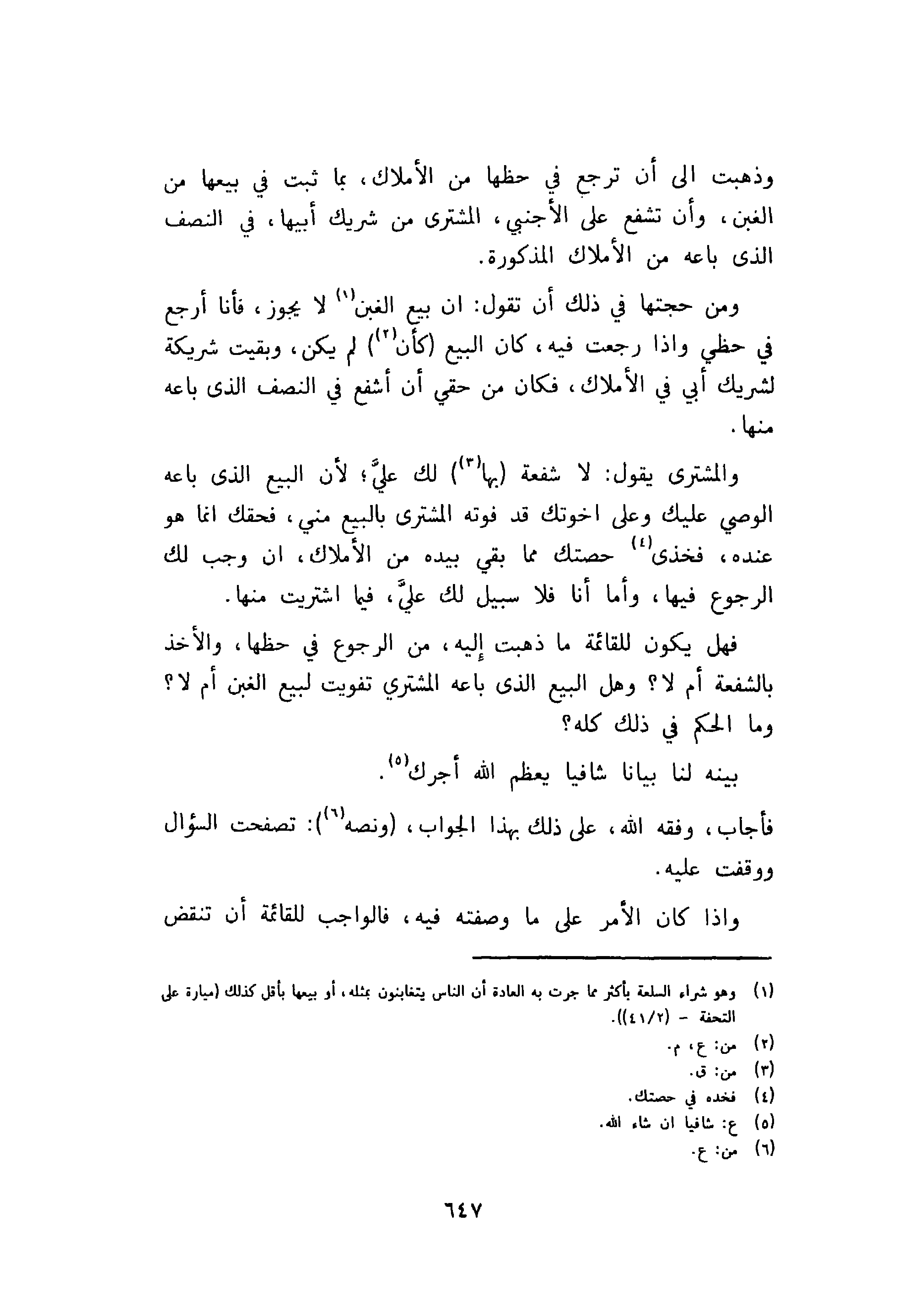 فهل يكون للقائمة ما ذهبت اليه، من الرجوع في حظها، والأخذ بالشفعة أم لا؟ وهل البيع الذي باعه المشتري تفويت لبيع الغبن أم لا؟ وما الحكم في ذلك كله؟