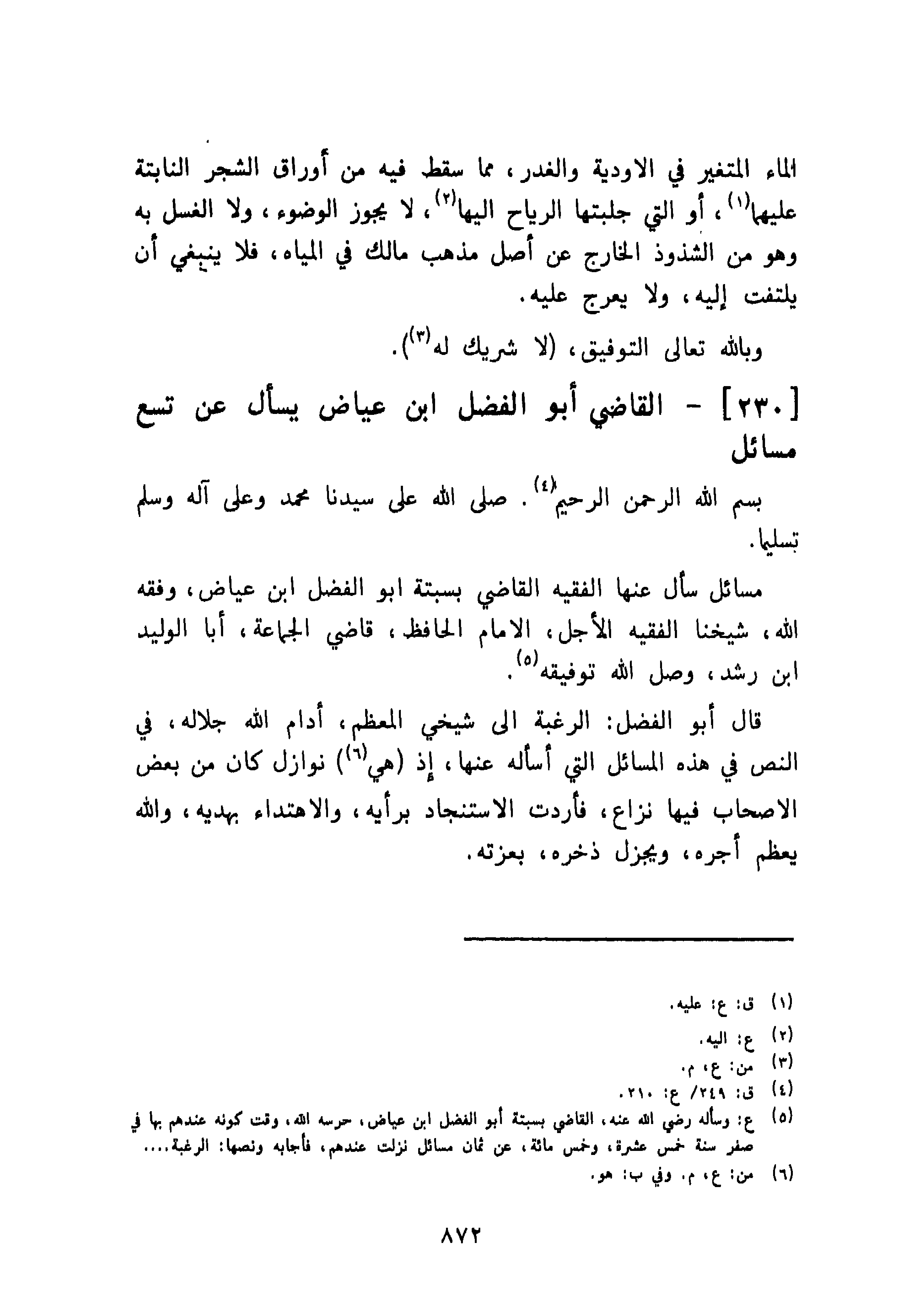 [230]- القاضي أبو الفضل ابن عياض يسأل عن تسع مسائل