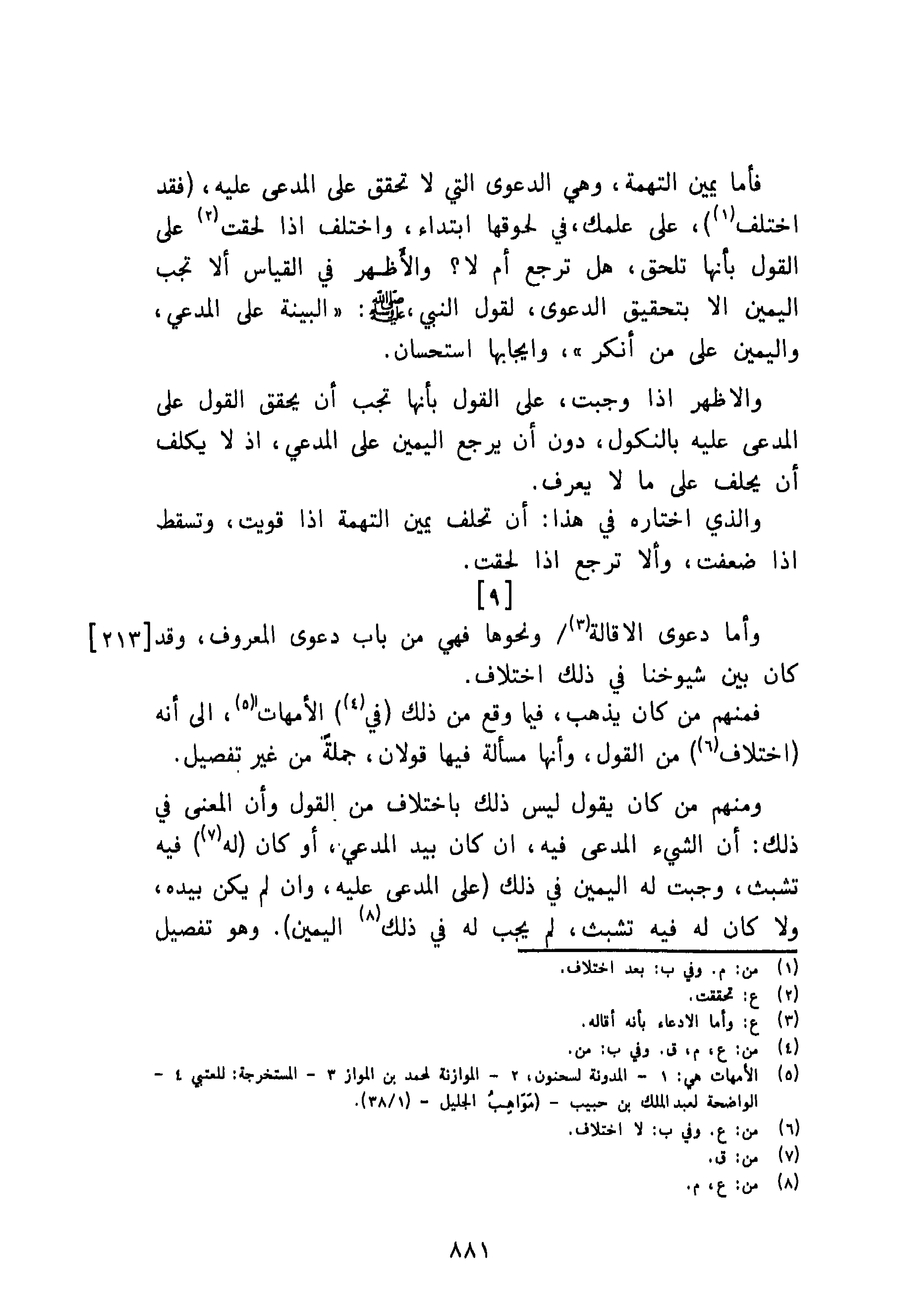 فأما يمن التهمة، وهي الدعوى التي لا تحقق على المدعي عليه، فقد اختلف، على علمك في لحوقها ابتداء، واختلف إذا لحقت على القول بأنها تلحق، هل ترجه ام لا والأظهر في القياس ألا تجب اليمين الا بتحقيق الدعوى، لقول النبي صلى الله عليه وسلم " البينة على المدعي، واليمين على من أنكر وايجابها استحسان.